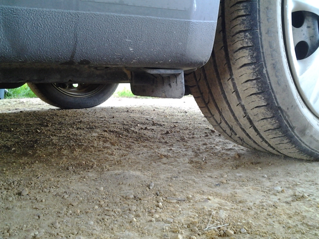 Onto the B road and the tyre roar became evident, but it was when we went onto the dirt I had to stop and find the source of the racket. There are these plastic things forward of the back wheels...