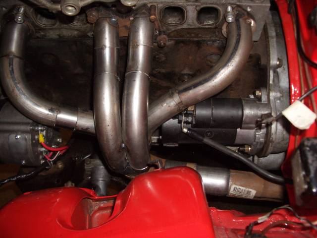 The exhaust manifold is now looking very racey. Attachment:
