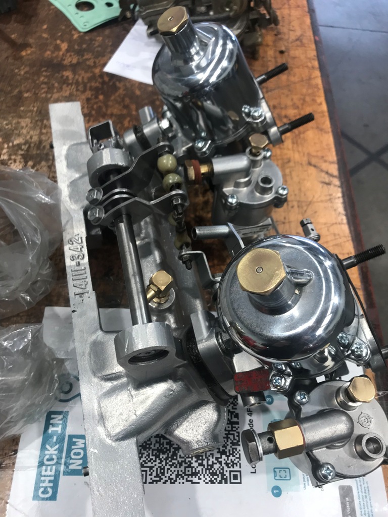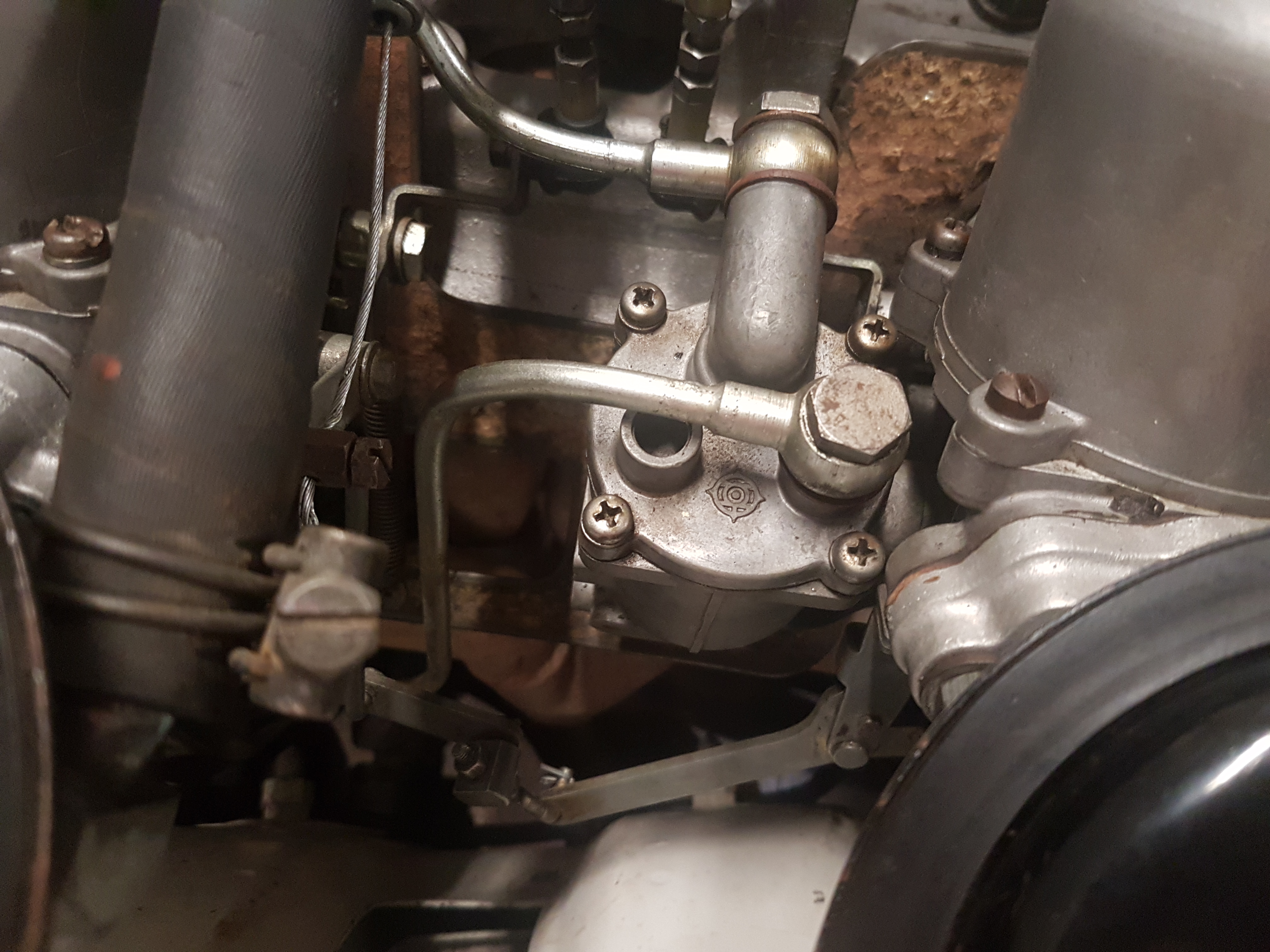 I ve never seen this layout of carbs in Holland. Always the bowles in between. It must be the age of the car: we do not have such an old model with twin carburettor. The metal pipes on the bowles for petrol overflow are metal too and go where to? We have them in rubber and they go straight in to the carb air intake in case the float is not working properly. There is always something to learn after all these years. Like the other day I found out later type Sports and GT ‘s standard have a limited slip differential ... Gr Dick