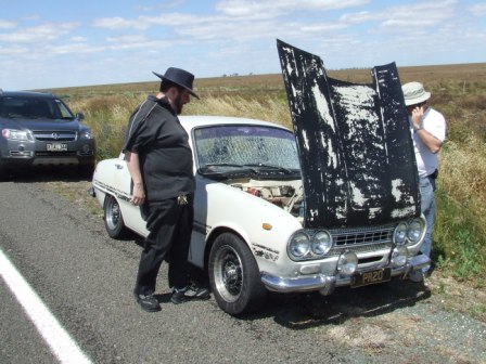 Well guys. I sure was an interesting trip. All along the Bellett just didnt want to get there and back on its own steam. As we continued to nurse it and encourage it home i did have a though as we went thru some roadworks that a Windscreen would be something that would stop us getting back home. And it did! The motor was very tired and a testament to how hardy these cars are, and that it made it to Coona was pretty amazing. Reckon a 2nd hand motor will go into it with a new clutch etc and then Rob will have the time to re-build or retire the original motor. Should be one or two of these kicking around in my shed. Got to keep these cars on the road any way we can.