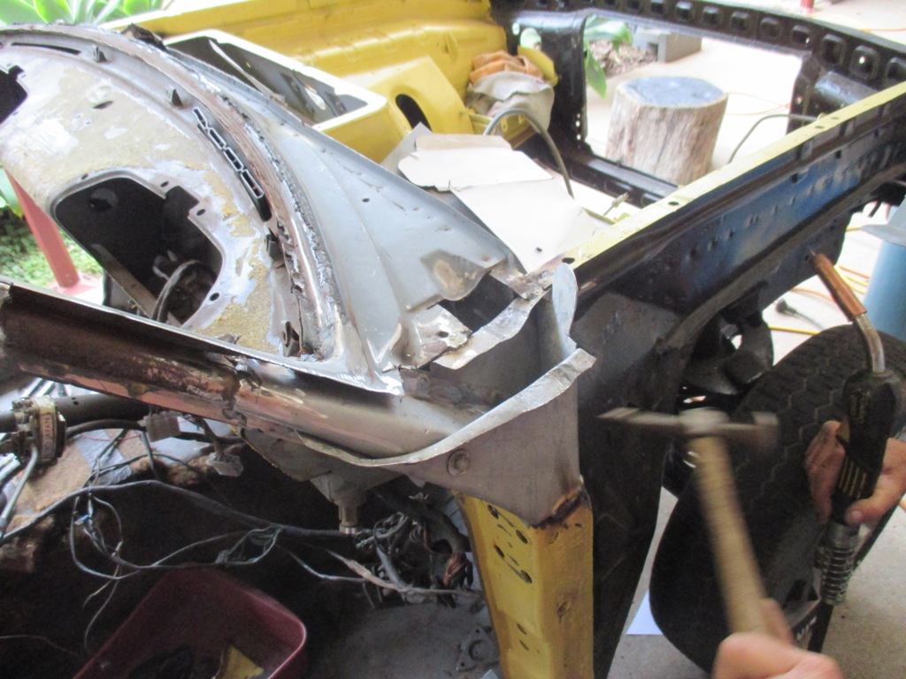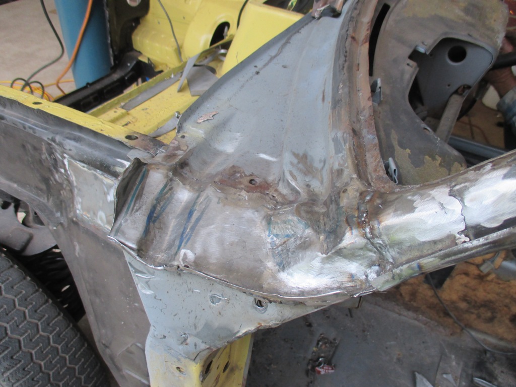 A good days work today and I can say we have now completed the drivers side with rust repair work. Next week we will complete the passenger side rear quarter and then move onto the tail lights in the back beaver section.