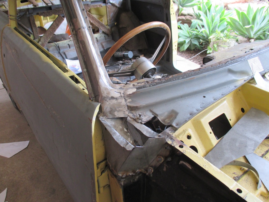 No work on the GT last week as my panel beater had the flu but he has recovered and we were back into it this week. A lot was achieved today, finished off the passenger side A pillar, repaired some more rust found as we moved around the passenger A Pillar area. The driver side A pillar is almost completed, only have to weld the cap on and we can tick that box off. We also fitted the rust repair sections to the quarter panels behind the doors, these are now ready for welding in. Next week we hope to complete the bottom of the rear part of the quarter panels and if time permits the back beaver where we will replace those sections that have been cut out to make the rear look like a teardrop. Here is pictures of todays work. Regards Peter