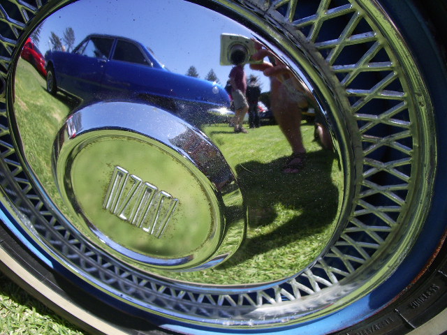 The other day, when I put my Watanabes on it. Technically that's not cool under the club rego rules, but I've just put them on until I get my new GT, plus they are an era-spec wheel. Some cars on club rego seem to get away with old-school mags in the style of the period, some don't. Here it is at the Uraidla Classic & Hot Rod Picnic, parked next to BettyBellett Leigh's almost identical, Roman Red 1966.5 sedan! Attachment: