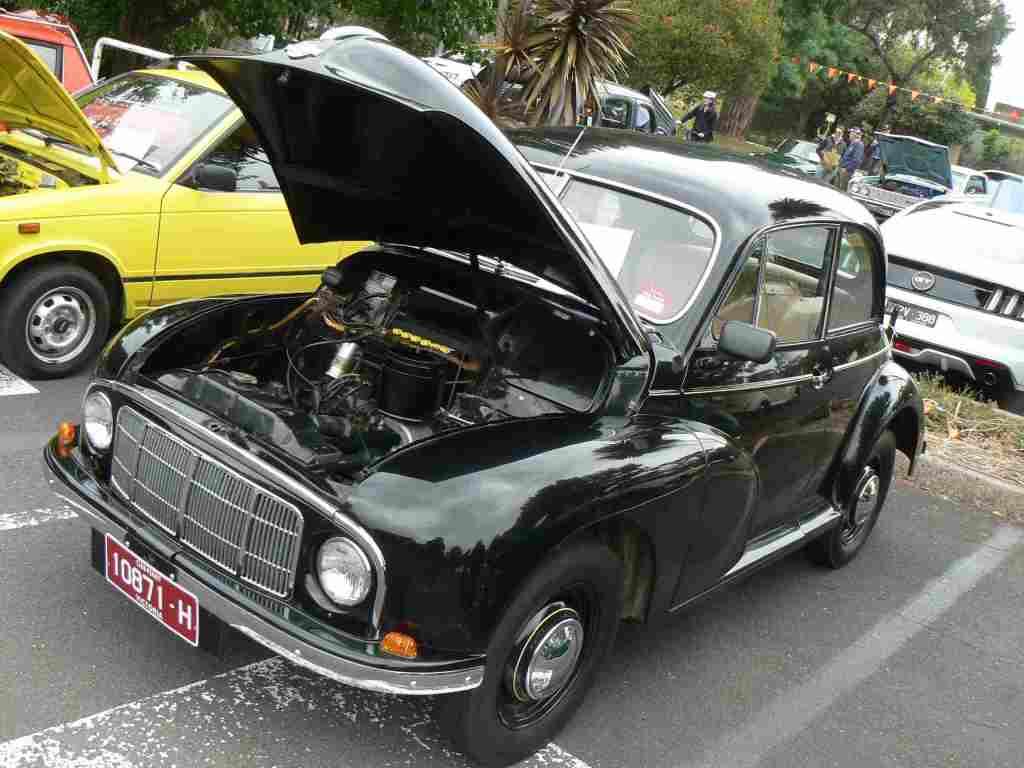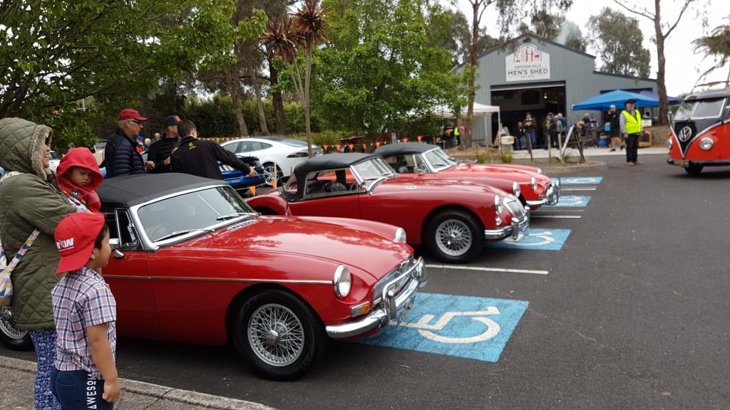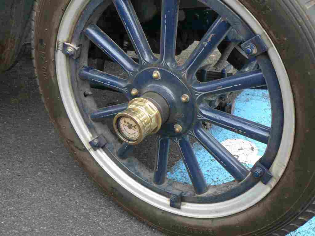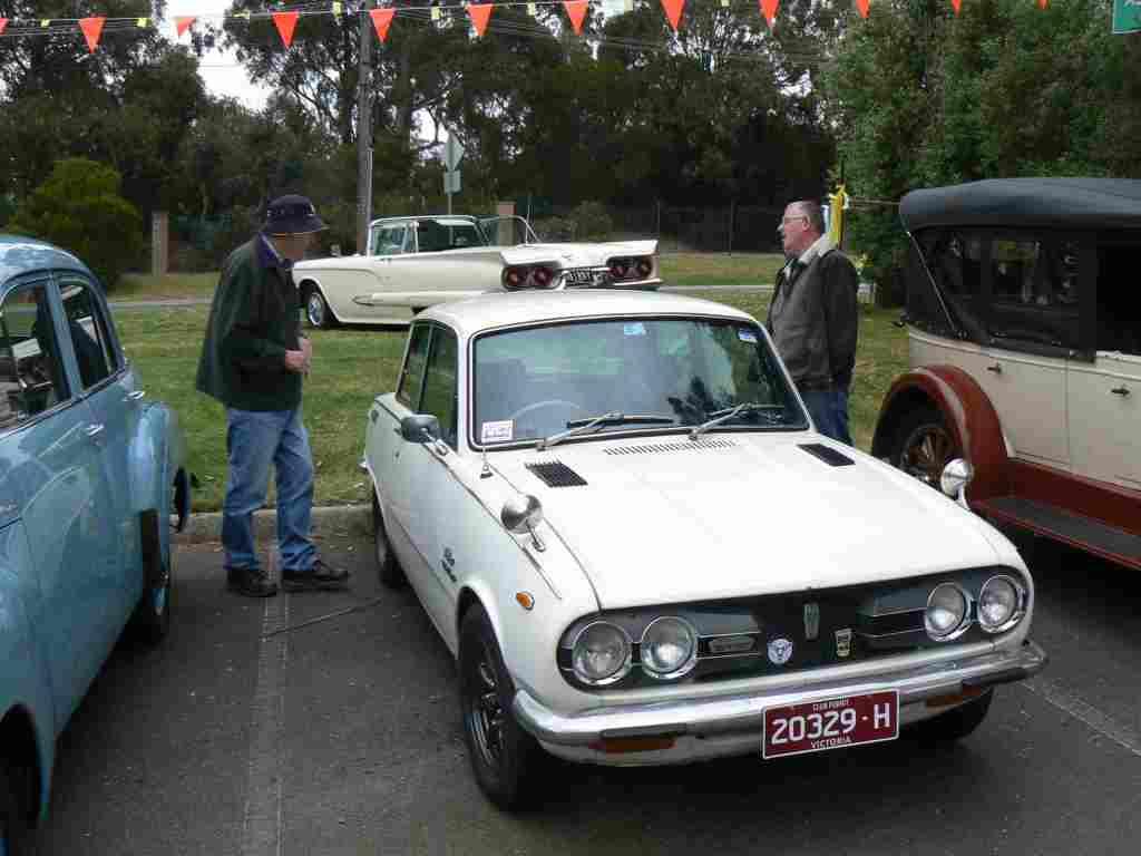 Never been to this show before but it's put on by the Croydon Hills (Vic) mens shed each year. It's about an 45mins drive from home and it rained most of the drive which wasn't promising. I'm told the rain kept many away but there was still a good selection of cars from a 1911 Hotchkiss to a Tesla S. The latter owner amusing the crowd by driving the car in the car park using his mobile phone. The odometer on the Hotchkiss is on a front wheel hub.