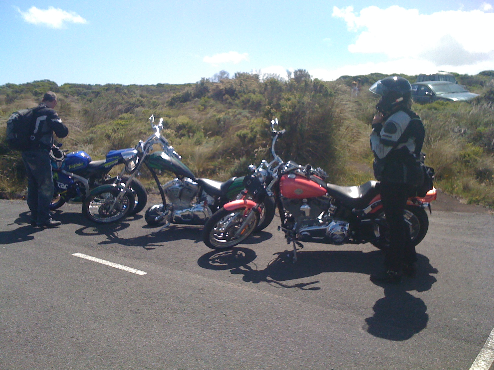 Attached a couple of photos of our Tasmania Trip 2010 with my Wife Bernie (Pink Harley) and best mate Marc (Honday CBR600 RR).