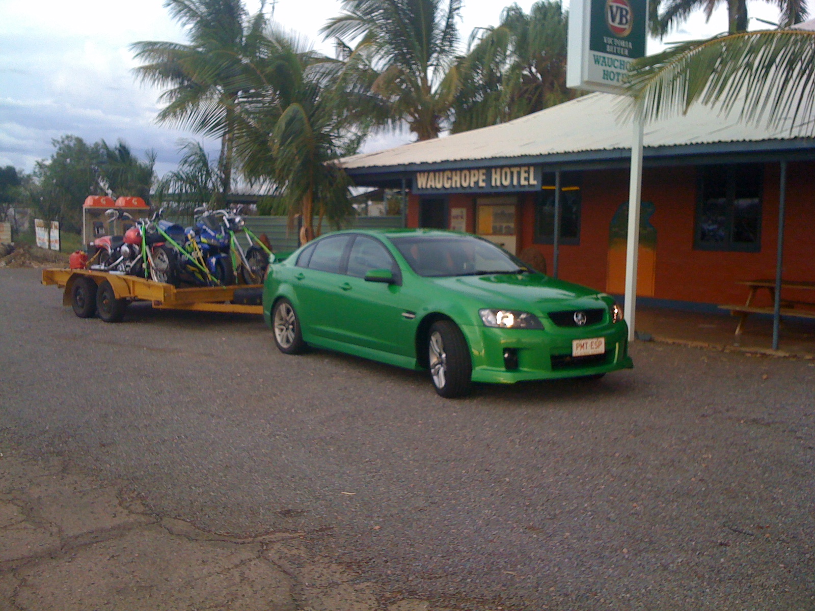 Trailered the three bikes down on a mates trailer behind our new car (bought 2 days before the trip as I did NOT want to drive the work Hilux single cab ute 3500km)