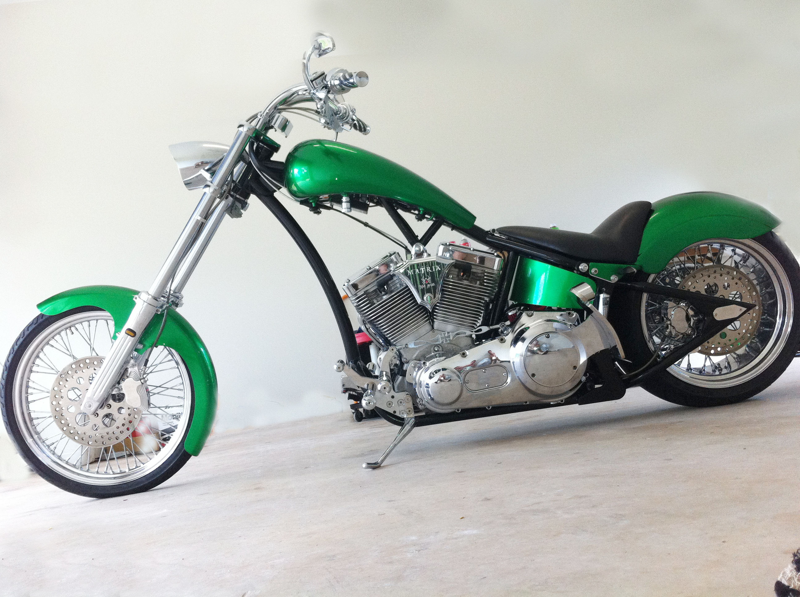 A custom built chopper with Ultima 127ci motor (based on the Evo Harley Motor)