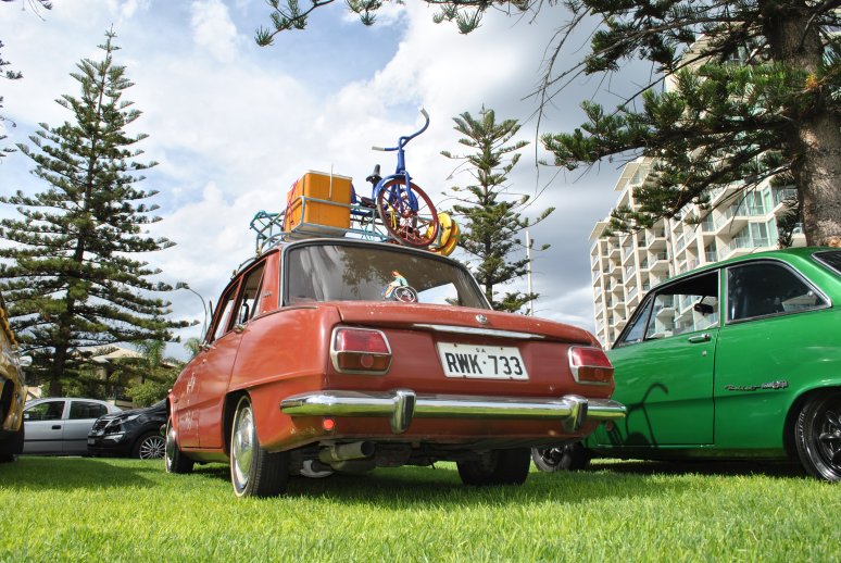 I put a roofrack on the Ratter... it's not attached, but the benefit of bringing the Wasp was I could throw it in there. It's got a stack of vintage crap on the roof, including my Dad's old tennis and squash racquets! I am so glad MrFlibbles aka Paul was able to bring his Florian; I have never seen two Florians in the same place! His was about 80% as good as mine... maybe more... but was only 25% of the price! Awesome buy! I was really impressed with the dark, dark blue interior too! Attachment: