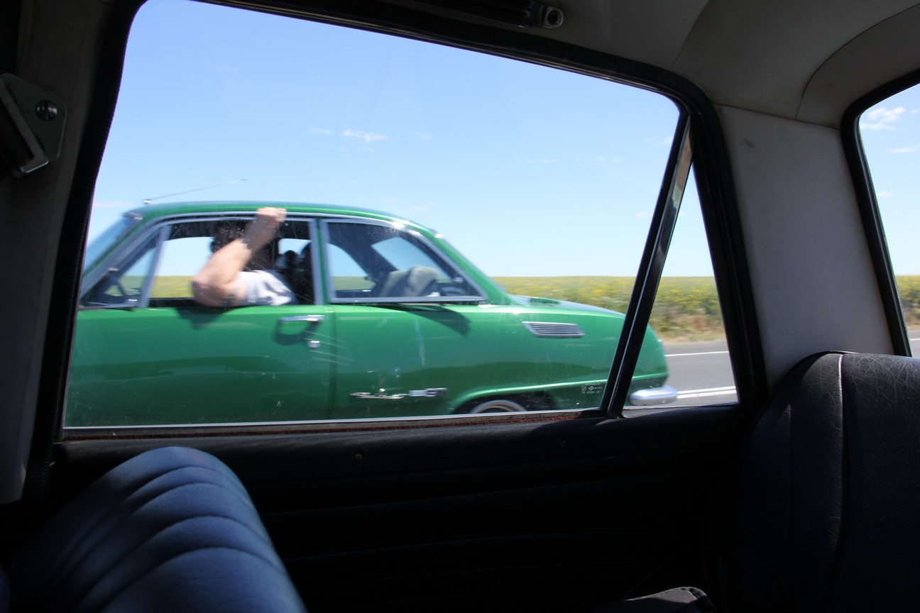Go Redlegs, go Holdens, GO BELLETTS !! Couldn't have been a better day. Older son Brad made it out of bed and into the GT at the crazy hour, total surprise,  Thanks for you Homies for doing the treck with us. We hunt in packs  Three Belletts barking down the main street of Claire Did miss others though, but great to hear she's a goer Duane. Mr. Flibbles the chief photographer.......great camera work Man  . Craig, you look very comfie and happy in the PR90. We got back to Oz's to ponder over the Fiat 850 in the yard. "Is this the most uncomfortable car to sit in ever built ?" I hear Dave saying.