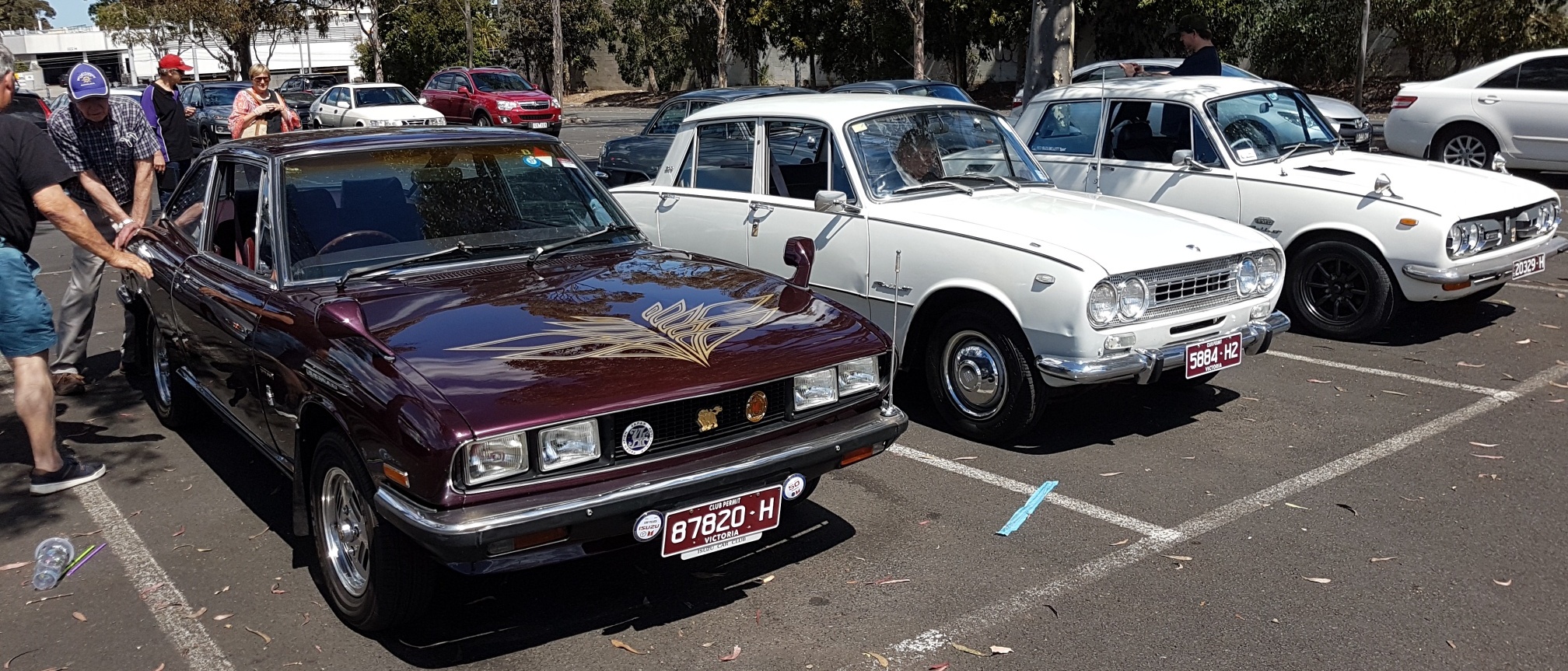 Car(s): Doris, AuntyMary, Shrek, Jimmy; GT, Wasp, Flo & Sed unrestos; 65 Elf; 82 Rodeo, 60 TX550, 72 Sport, & a Sigma.