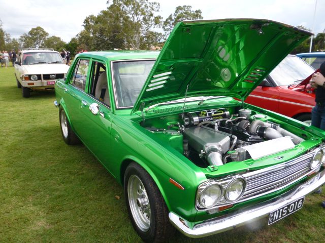Gerry and I thought it would be good to drop into the Banyo show today (Brisbane) to see any unique cars we hadn't seen before and we did! A sedate looking 63 Datsun ute with a performance engine in it A pair of rare 71 Skyline GTX cars... one 2 door (took out peoples choice) and one 4 door. The owner had just taken delivery of the ex S.A. 4 door GTX yesterday. A very original RX2 GS2 Even A LHD orange Capella from USA cont'd on next post.......