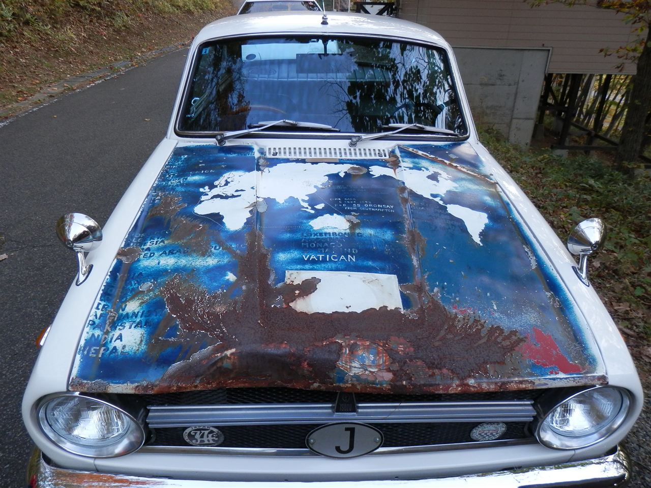 October 30, 2011 Video courtesy of Isuzudas: http://www.youtube.com/watch?v=QP45-NQpIHc4 Belletts, 3 Piazzas, 4 Gemini PF, 6 Gemini JT0 (RB), 4 Gemini JT1, 2 Askas, 1 Bighorn. I found some pictures of this event several weeks ago, and the white Bellett with the heavily damaged blue hood stuck out. As it turns out, either the entire car, or maybe just the hood, is from the Around-The-World Bellett previously discussed in the book section: viewtopic.php?f=31&t=772It looks like the track of the trip is marked on the hood.