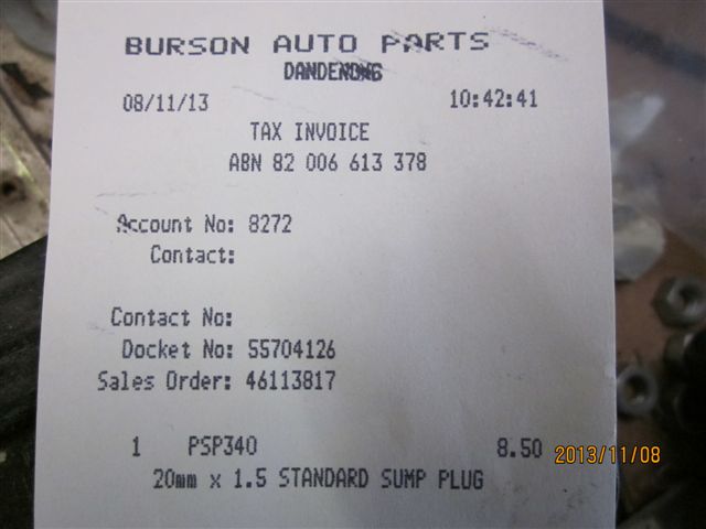 the plug is 20x1.5mm thread. This part PSP340, has a smaller head than genuine part, otherwise works just fine. Comes with a fibre washer also.