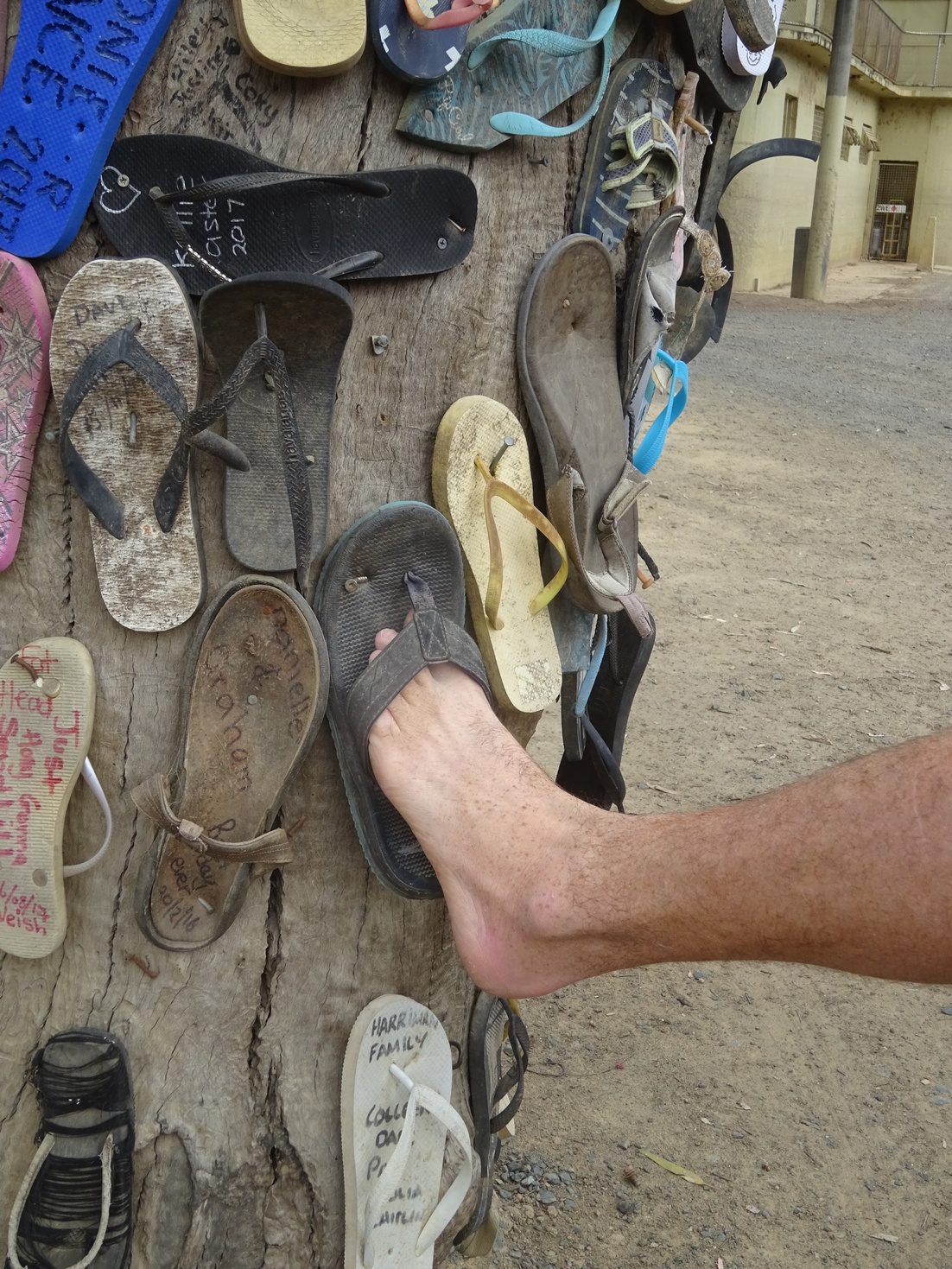 A must visit in Echuca is the "Thong Trees" down by the paddle steamer docks..... and who better to have in your company at such a sacred place than the one and only Mr Thong himself - GT Orphange, thong aficionado extraordinaire (he even tried a couple on for fit) Attachment: