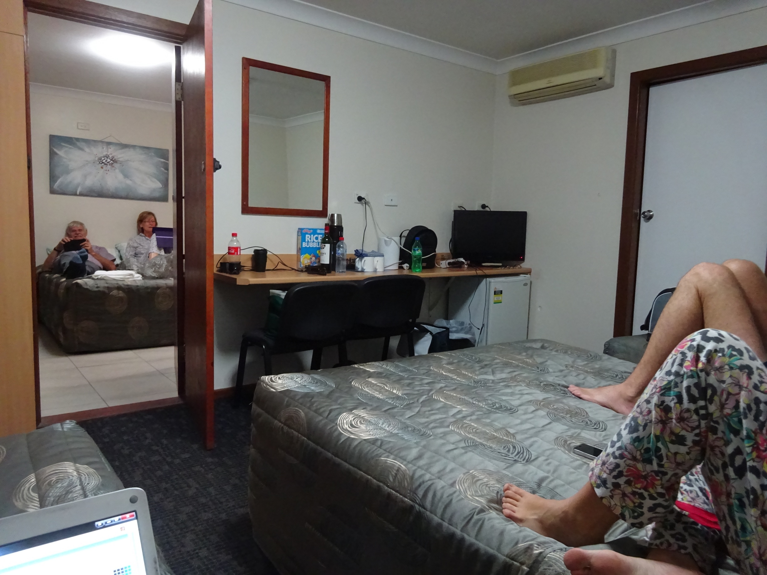 Tonight we are shacked up in the Palm Valley Motel at Tarro - with adjoining rooms of course  Attachment: