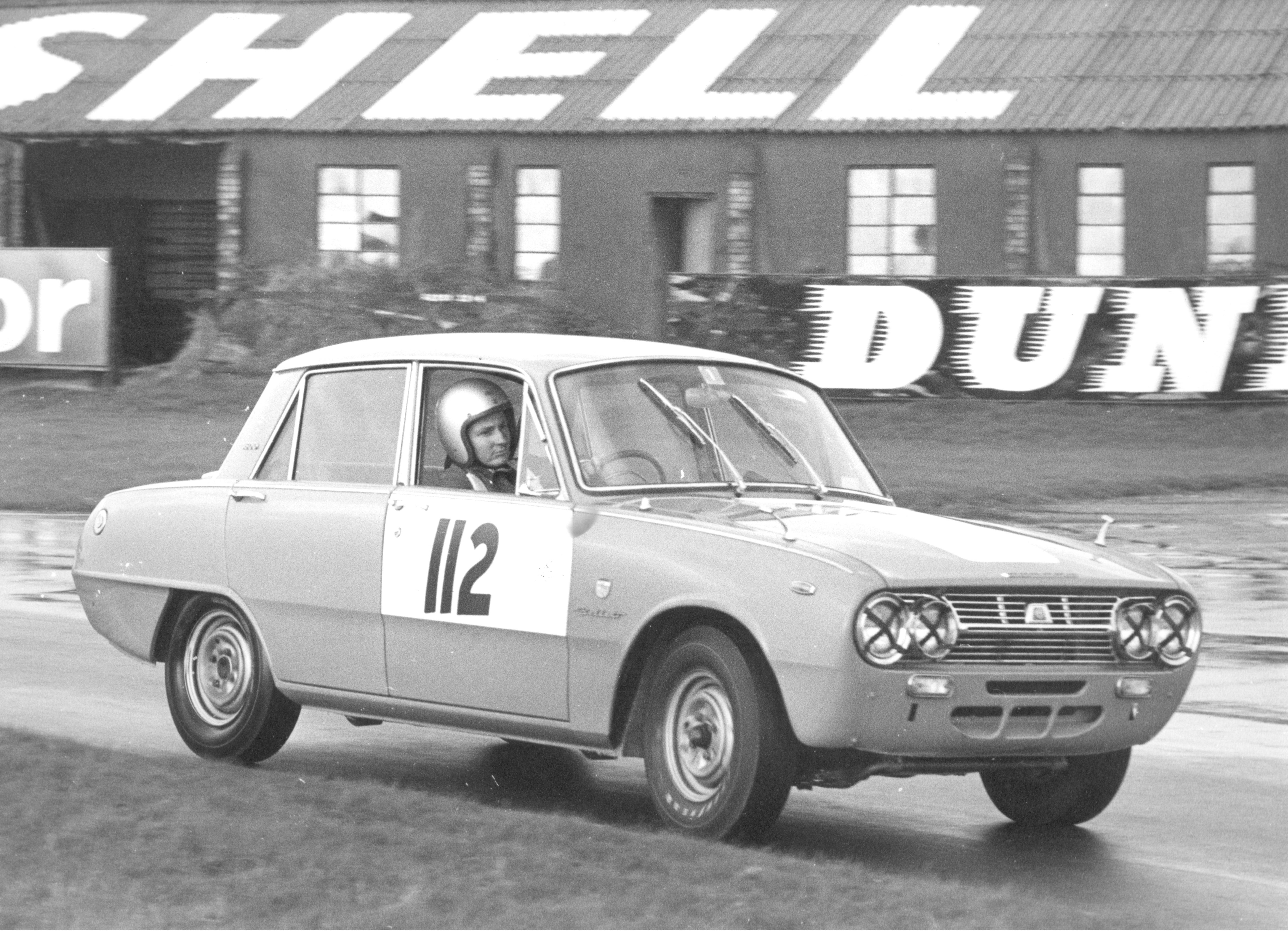 Interestingly the book and the race programme state the car as being beige, but clearly from the earlier colour photo and one I shall post later, the car was painted red for the race. Sadly the car was to only complete a few laps before grenading a piston, but remarkably a few pictures were taken.... ....I think this goes to show how 'novel' this little Jap racer must have been (I have a late 70s race car which competed at a seriously high level, and there's far less photos of it in period!) This rather grainy shot shows that it must have rained some way through qually. Attachment: