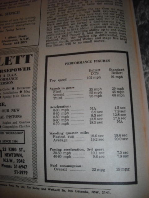 The Bellett received plenty of press during the 1960s and it was always better when the Bellett featured on the full-colour front cover! Here is a scan of the "We start Project Bellett" article from Wheels Magazine from July 1965. The car must have been fairly new as it was a 1965-spec car (no spear through the '1500' badge and the badge is not all-black). No holds barred, the people at Wheels Magazine fitted a set of extractors, a hot cam, twin carbies and a choice set of chrome stockies! The article has been scanned fairly large so you can read it clearly. Unfortunately the first and second pages of the article have a picture of the Bellett that stretches between the two pages and as a result that picture is quite distorted. I'm not about to un-stitch my magazine, so it will have to do. I wonder if DAS-111 still exists? Probably not given the final line of the article; 'Oversteer is the final characteristic, but everything can be corrected with small steering deflections and MORE POWER'! Attachment: