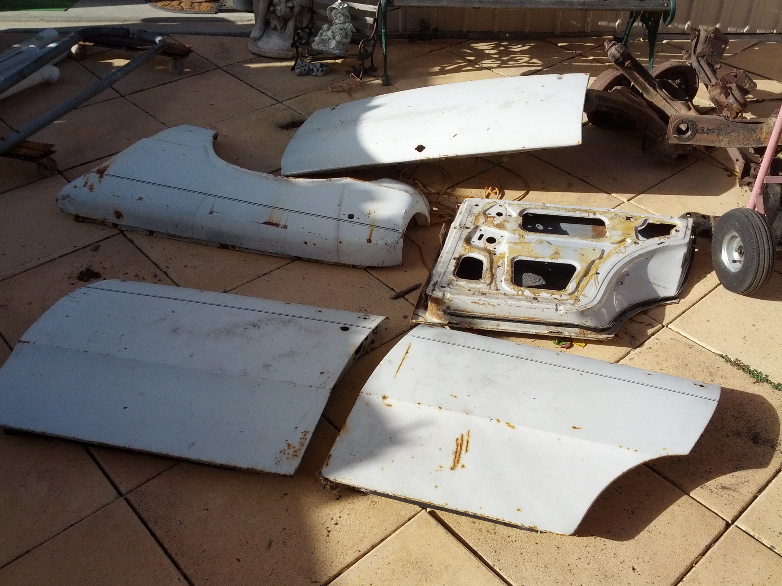 I have some Bellett panels which I no longer have space for. They are: A Boot lid (with rubber seal) 2 rear doors 1 front door A LH mudguard. (the RH one is part of the Violet Crumble along with a bonnet and the other door) A complete front suspension subframe A complete rear subframe (Diff carrier with diff and trailing arms) Front and rear door frames If any one wants them please let me know. Otherwise unfortunately they'll be off to the metal recyclers to become chinese tea kettles.