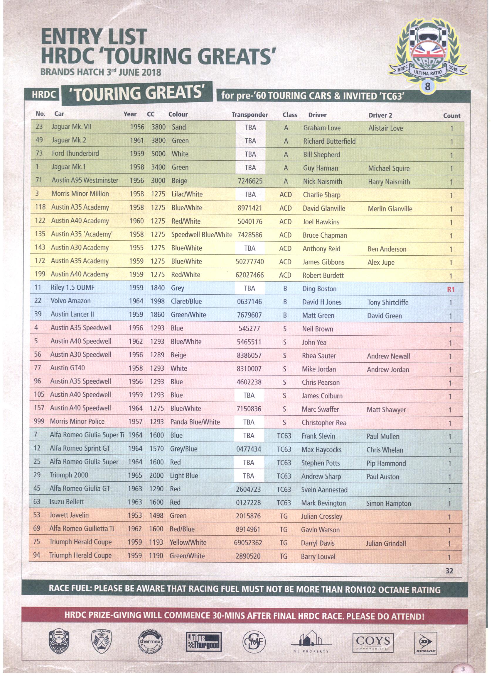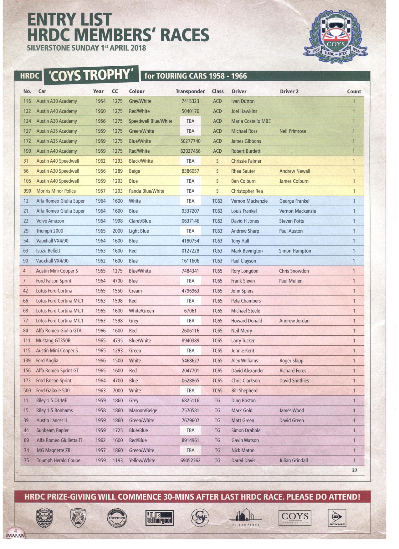 Thanks guys. You may be interested in the runners and riders for the race at Silverstone on Sunday. Attachment: