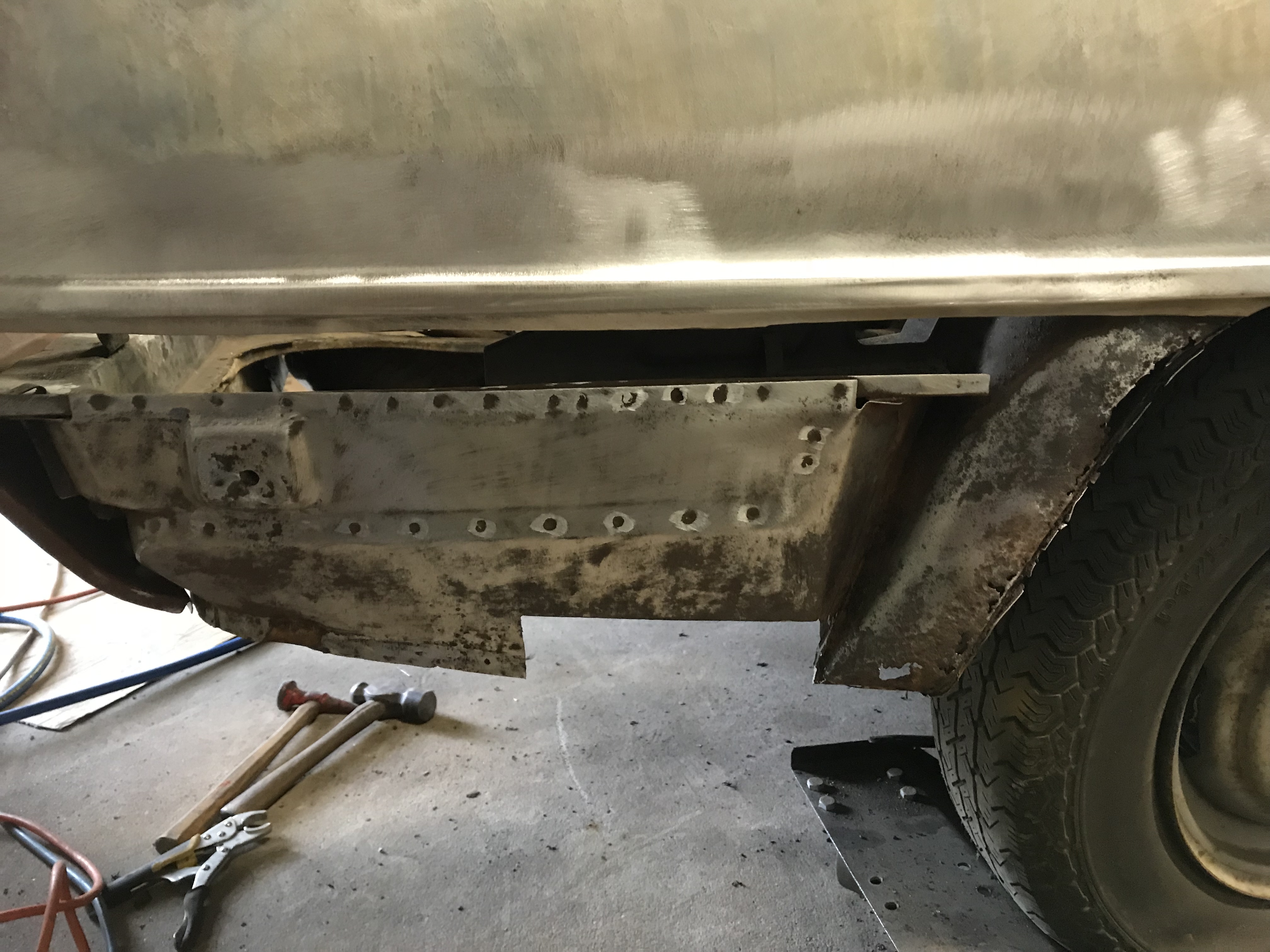 Bit of an update, new sills ready to weld in, rear end started welding on, lots of metal cleaning, apoxy sealing, more updates as weather gets warmer.