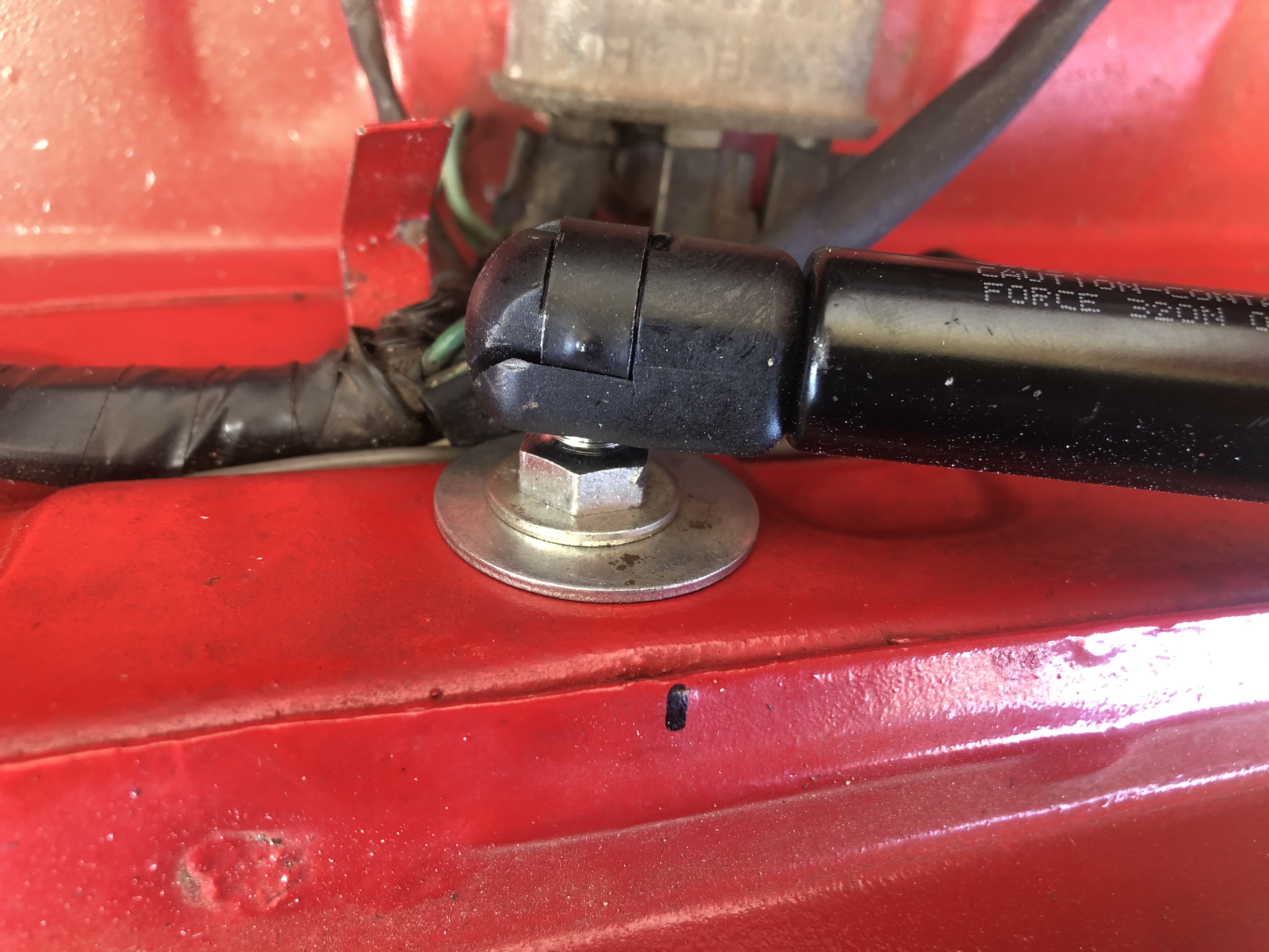 Hey Glen, Yes thank you - you certainly did. Ok here are the details. FRONT BONNET STRUT: Calibre CSS311 - new from Supercrap Auto. It is 500mm from hole to hole extended and 311mm closed. STEP ONE: You have to cut and grind off the stud on the bonnet side of the bracket and drill it out to 8mm to pass the ball stud through. Prime and paint the bare metal. Step Two: Measure 318-320mm from the original lower inner guard mount and drill a hole 8mm. Prime and paint the bare metal. Step Three: Insert the ball end studs in the bonnet and the inner guard and retain with nylock nuts - you MUST strengthen the inner guard with a plate (I used a large washer both inside and in the wheel well area) or the inner guard will flex too much from the force of the closed gas strut. Step Four: Install strut and test a couple of times and make sure it is not binding. In my opinion the area on the bonnet bracket is a bit weak and may be prone to kinking as you close it - so I "help" the bonnet closed by pushing near this bracket as well as from the top corner of the bonnet. NOW FOR THE BOOT. I used and gas strut from a old desk that had a hydraulic keyboard height adjuster. They are 290mm from hole to hole in the open position (which I think needs to be longer) and 180mm hole to hole in the closed position. With a lifting weight of 12kg. This just bolts to the original brackets with a 12mm spacer on the bottom to align the strut properly. I hope this all helps. Let me know if you have a crack to install some yourself and post your photos please.  Good luck and enjoy doing this great upgrade to your Bellett.
