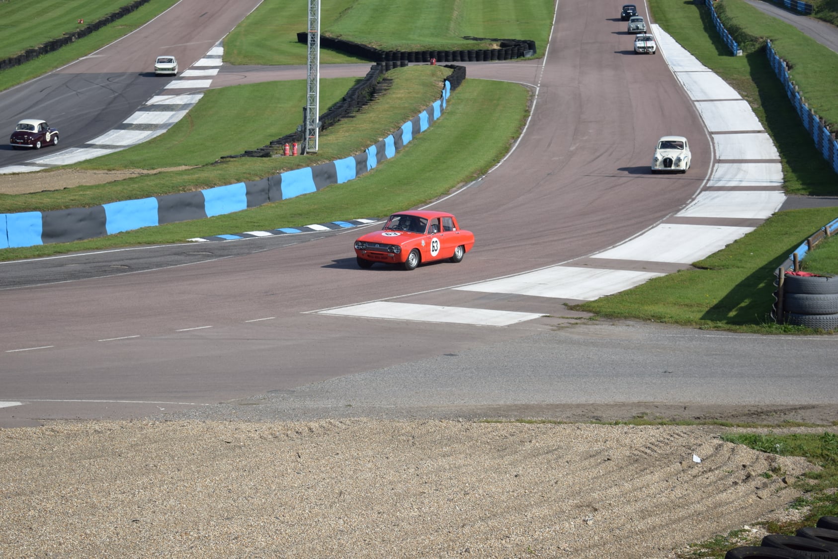 This time we more or less kept them at bay. I've never been to Lydden Hill, and was impressed by this little one mile job.....set in a natural bowl there's some excellent elevation changes to test both car and driver. Great format too, we had two short races instead of the one longer one, the shot above is the second grid after a little attrition in the first. I forgot to put the camera in for the first race, which is a shame, as it would have recorded achieving one of my major goals for the car....those of you who've followed Rolie's story will know I've often yammered on about putting a Lotus Cortina to bed. This was done by Alec Poole in a wet Revival back in 2013, but not by me.......guess what? Attachment: