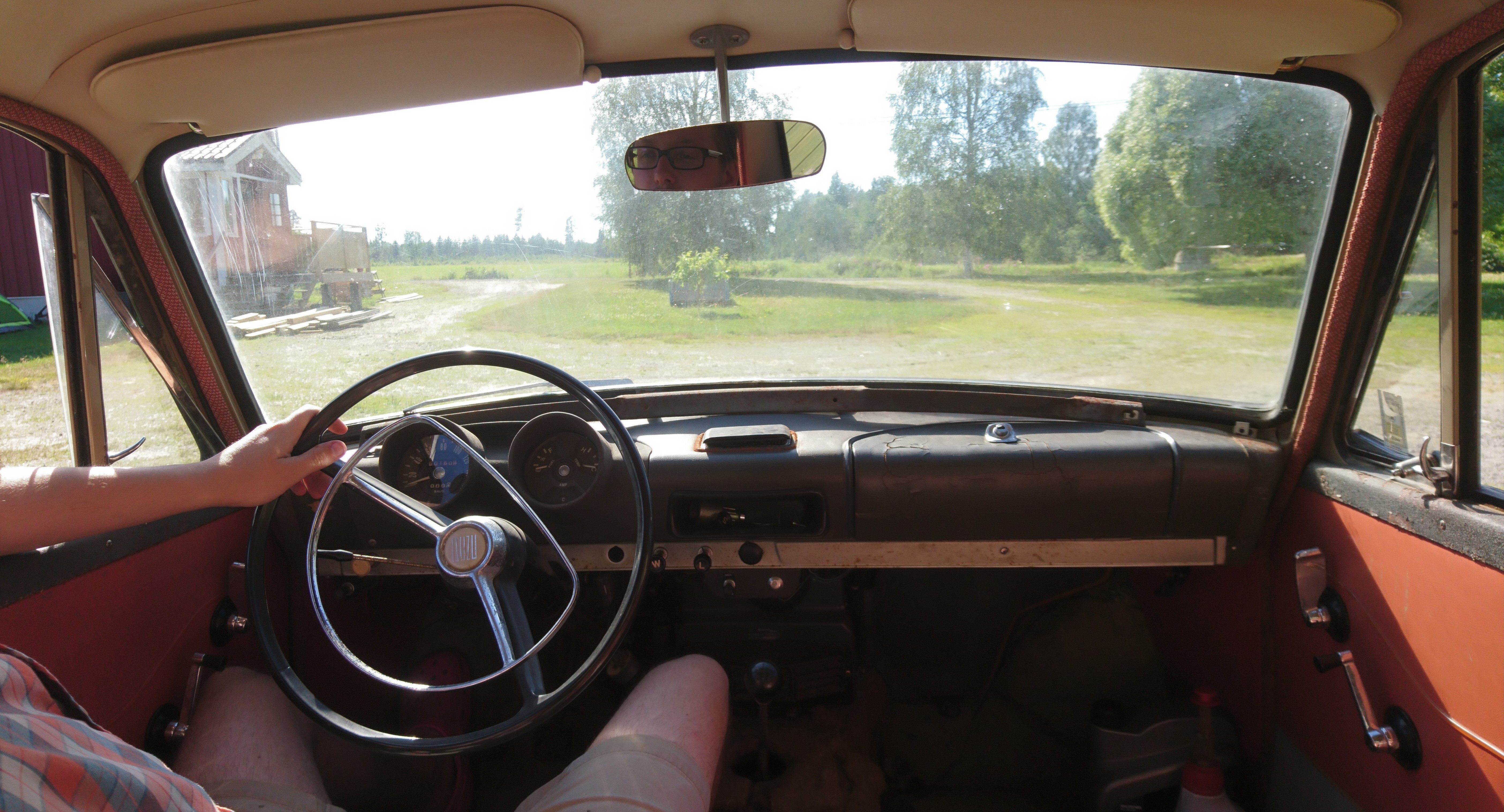 All the pics are taken at my brothers place where I "dumped" it for now since I'm spending my vacation there and since it was kind of far to drive it all the way home to Kiruna (~900km north from where we picked it up and ~200km above the arctic circle  ) Yea some cleaning is necessary  Things done/checked so far: 1. Engine turns freely. 2. Starter and starter relay works. 3a. Oil pump works (oil is getting up to the valvetrain) 3b. Discovered that I need to replace atleast 2 pushrods. 3c. Checked that all the valves move freely. 4. Most of the lights work, blinker relay is missing though.. 5. Ignition stuff cleaned and gets spark all the way to the plugs. 6. Carb holds fuel and looks to be complete, valves and float moves freely. 7. Tires that aren't from the seventies and is about to pop at any second is now on so I can move it easily. 8. I have no keys but someone already took apart the ignition switch so I can turn it and bump the starter without keys. 9. Emptied the ancient engine oil and cleaned the filter housing from debris and well.. a lot of mud.. and put a new filter in. 10. Changed the cut in half/broken oil pressure switch with a new one. 11. All the doors and windows open and close really nice, almost like new. 12. The rust situation is so far really good, might even pass the "far away in the future" inspection without any welding. 13. Ordered a few pushrods so I might here it roar before I leave it for a week of watching "Streetweek" dragracing with friends from the passenger seat of a turboed 1958 Chevy Impala