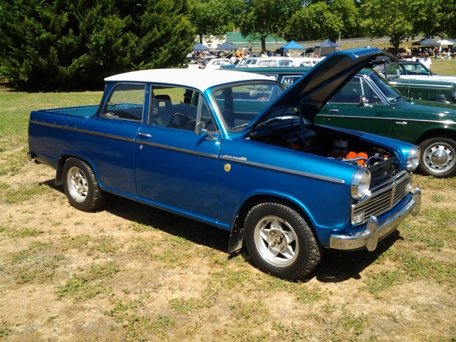 Yes mate, a Datsun 320, 1200cc 60hp. I guess you could call it a coupe ute. Or a 2 door dual cab. Either way, very cool. 3 speed column shift, with a split bench, so its a 6 seater! Full chassis, with what looks like ton leaf srings. 6 studs, same pattern as Wasp wheels. Built solid. There was one at Classic Yass last year, with a 200b motor with twin carbs. Sedans were called Bluebirds, and there were plenty of table top single cabs as well as wellback utes. Still see those about. Isuzu built a prototype Wasp like it, that would have been so good. Cheers, Matt.