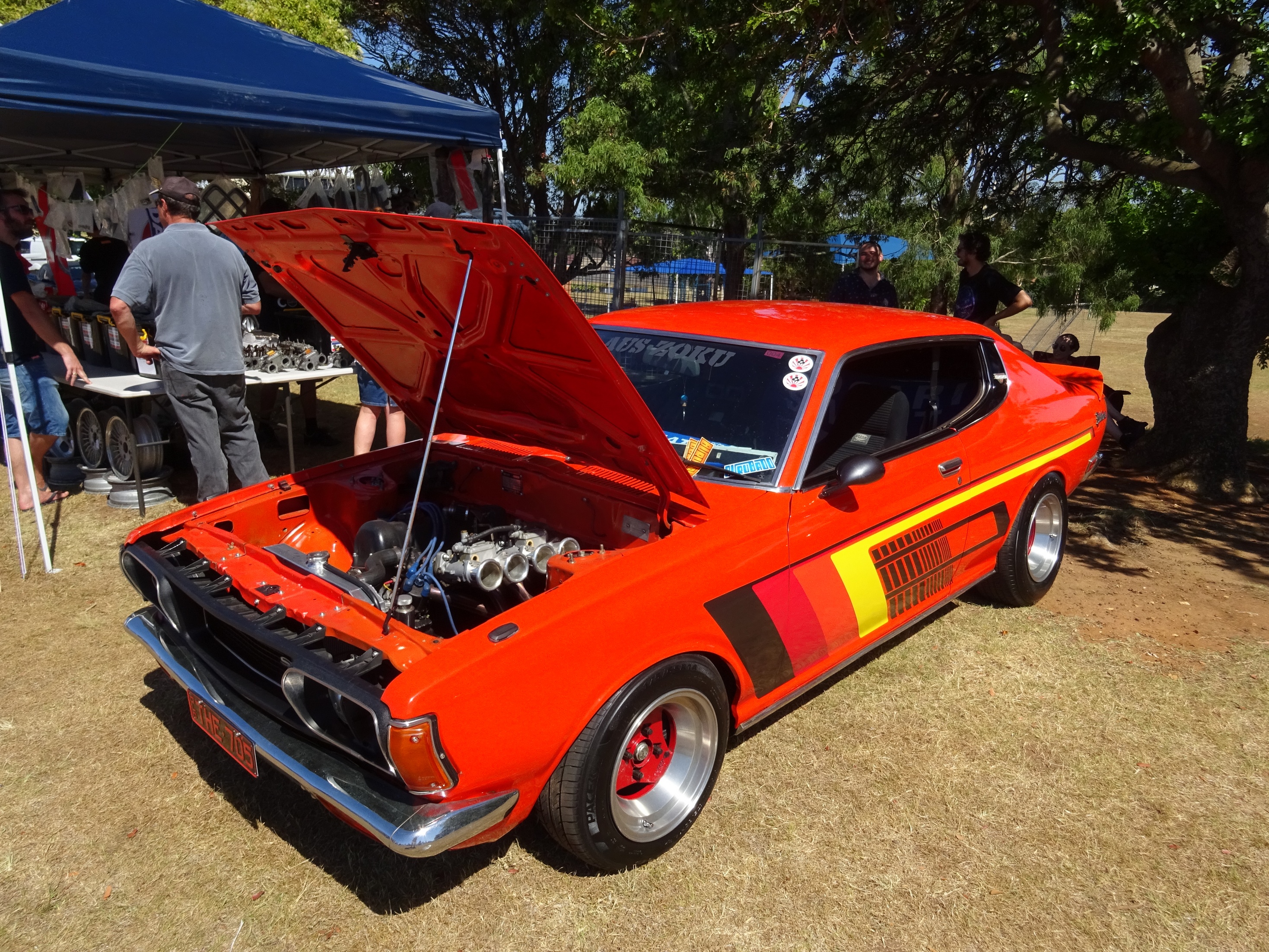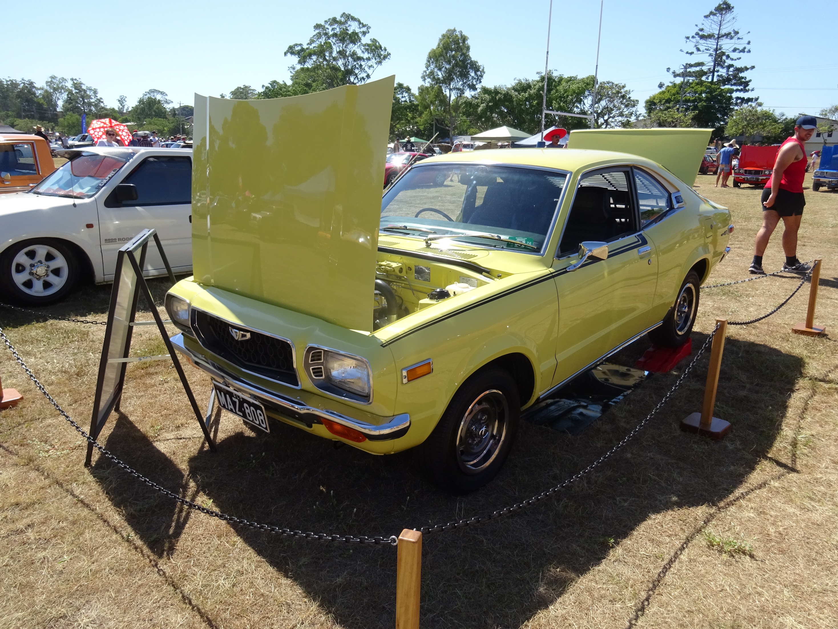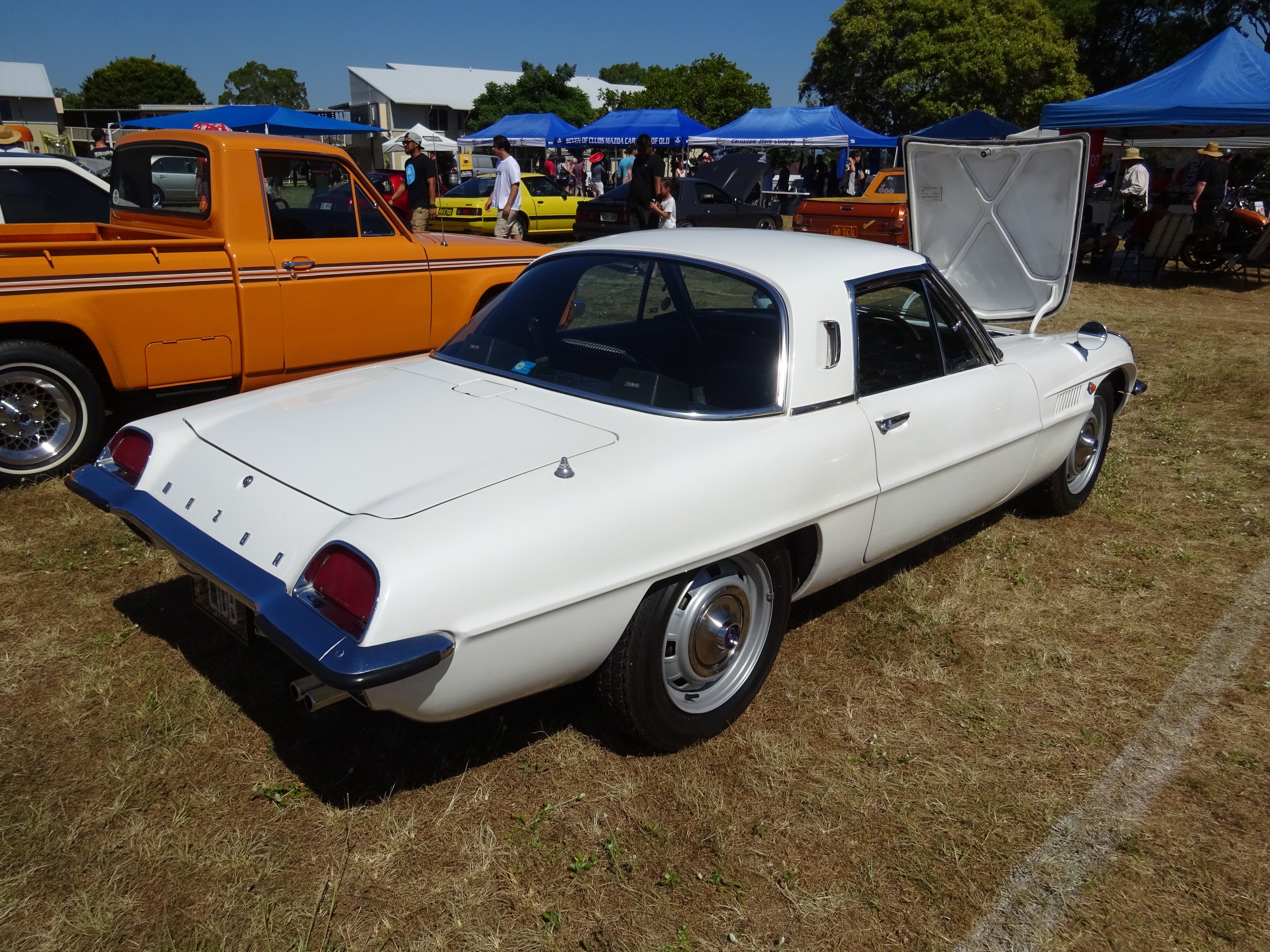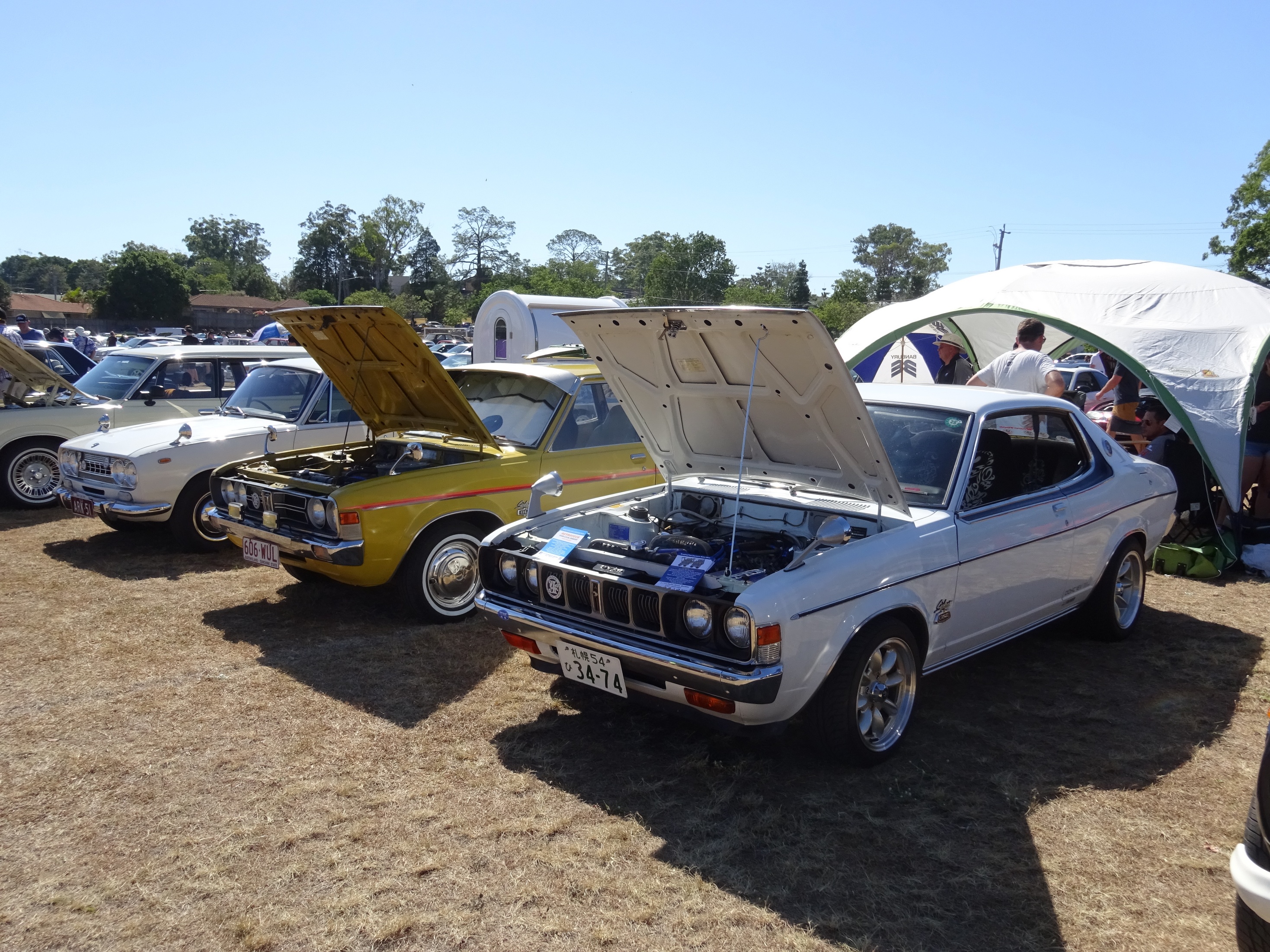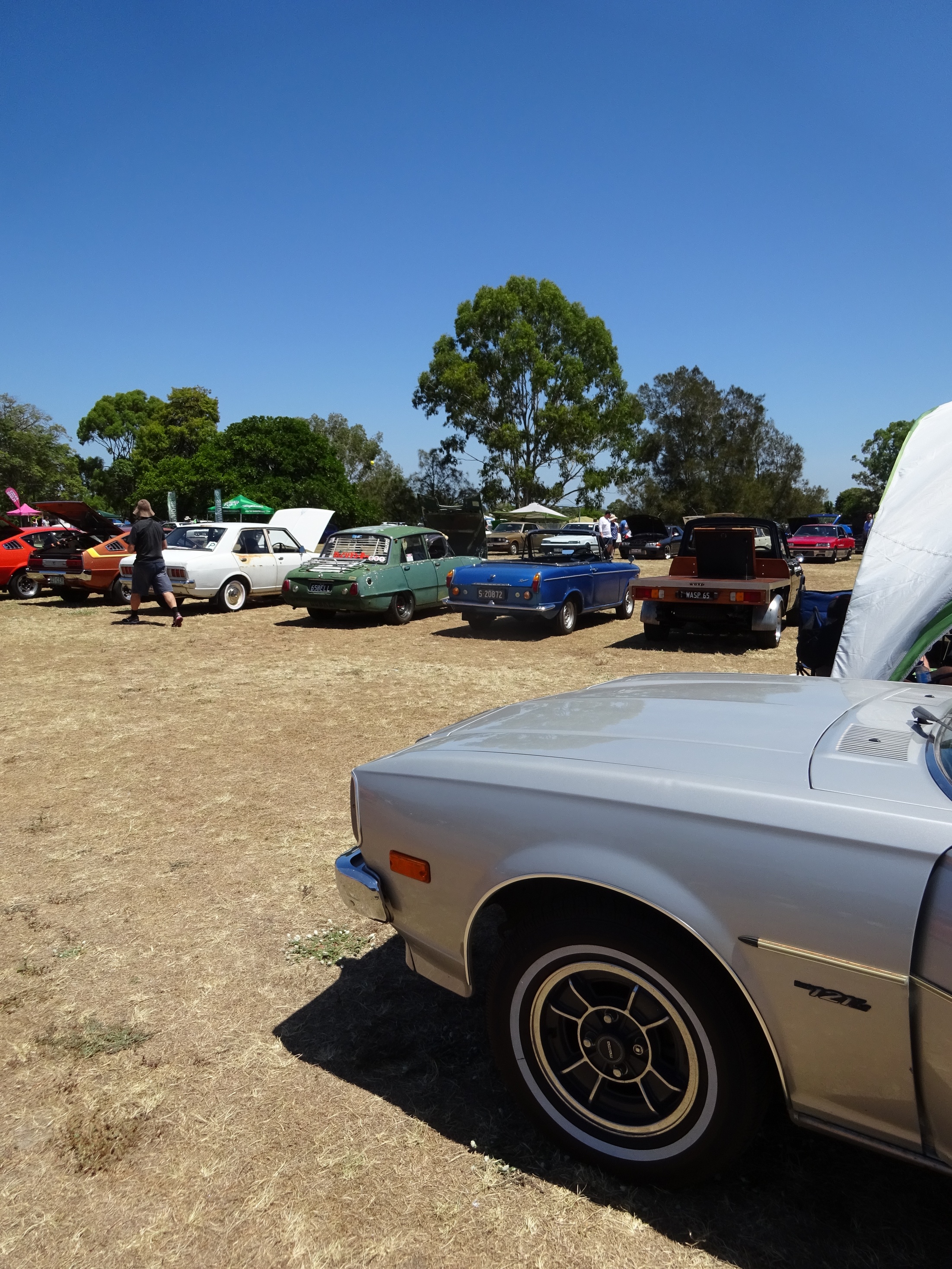 A few pics from Sunday's All Jap Classic It was an oppressively hot day but there was still an impressive turnout of classics (and moderns) with more than 800 cars rolling through the gates. The majority started to bail on the event at about 930am and the field was virtually empty by 11am. We also had a couple of unexpected visitors on the day with Peter turning up in his beautiful 117 coupe having driven it up from Sydney (I think that's where he lives) as well as Ross (2ldohc) and his fiance (sorry forgotten her name already..... how bad is that  but she does have the most amazing engagement ring EVER) turning up for a quick look and a chat. Here are some of my pics for your viewing pleasure  Attachment: