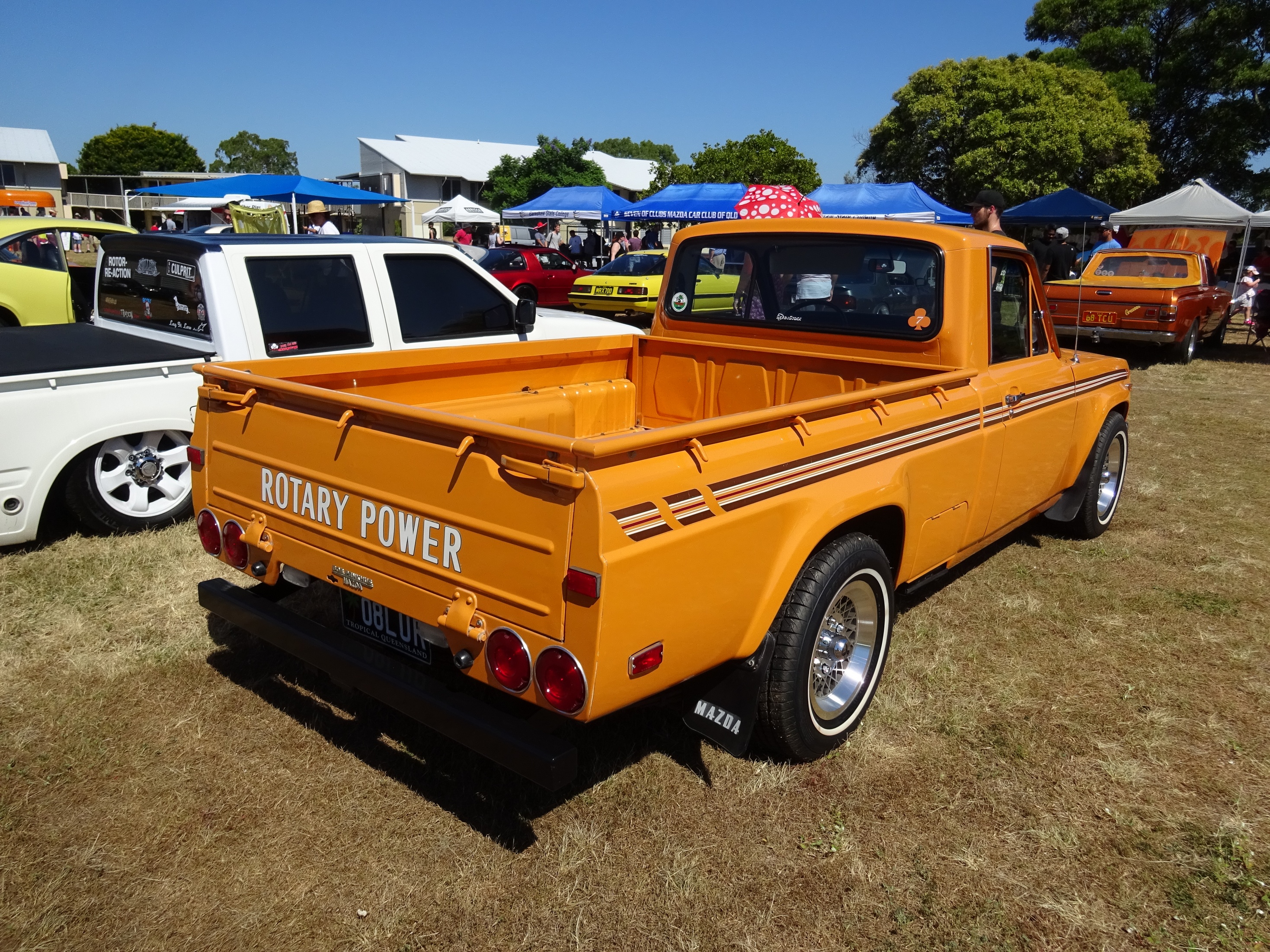 Next weekend, Sun 12th Feb, is the All Jap Classic organized by the 7 of Clubs (Mazda Car Club of QLD) and my Dubbo Wasp ute is going to have it's first day out with some of it's extended family and friends. Still farm fresh with all it's original Dubbo dust and massive wasp nest under the drivers guard It will be the first time I have EVER trailer'd one of my own cars to a car show