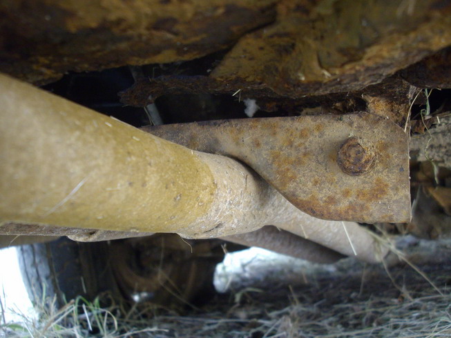 Hi JT, sorry I'm so slow to get to this, hope it's some help. My parts donor is fitted with an original equipment system (aibeit rusty). When I get to taking it off to copy, I could take more pics. Original muffler with heat shield. Attachment: