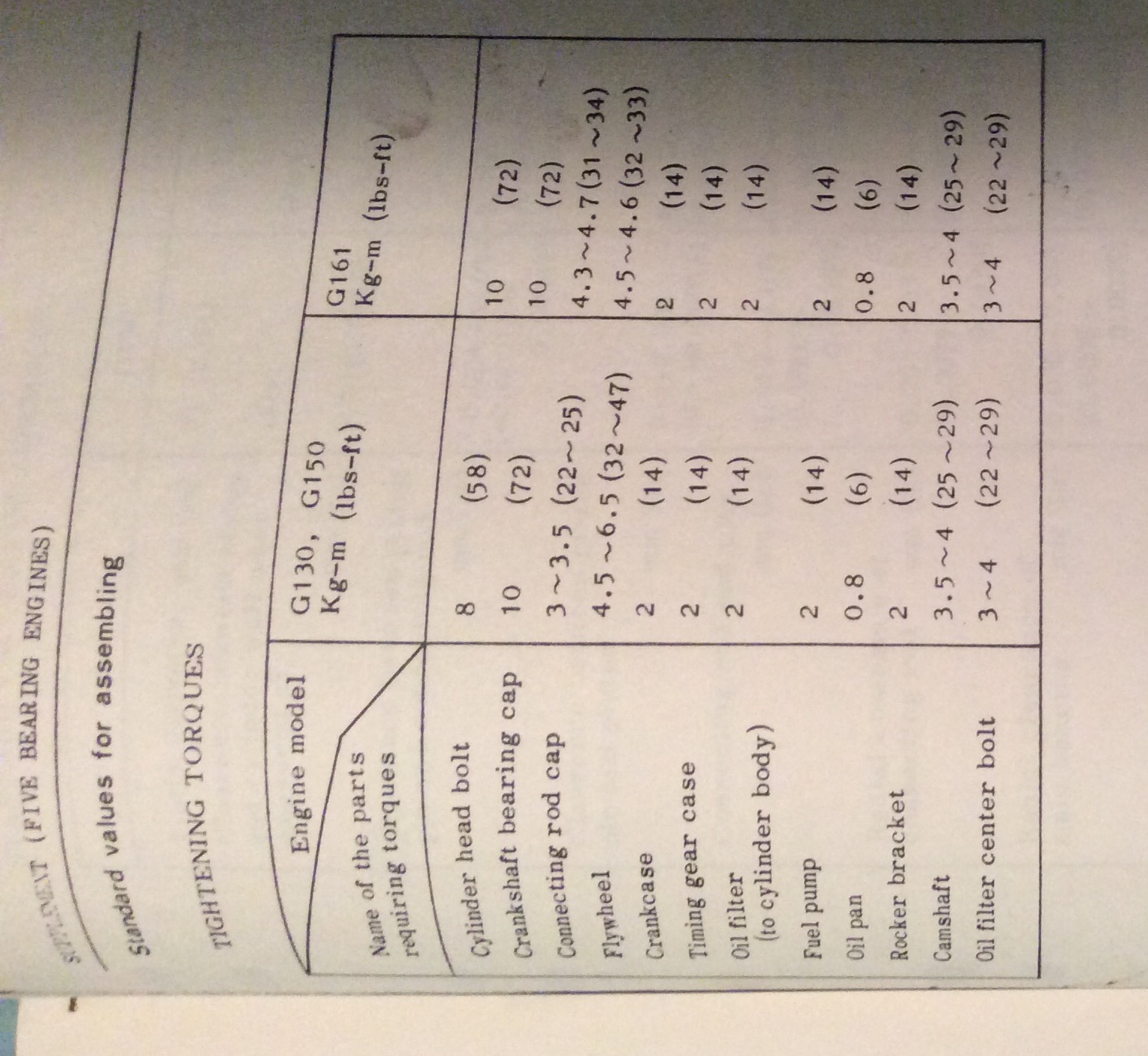 Here is the table of tightening torques for 5 bearing engines, Cheers, Lewis.