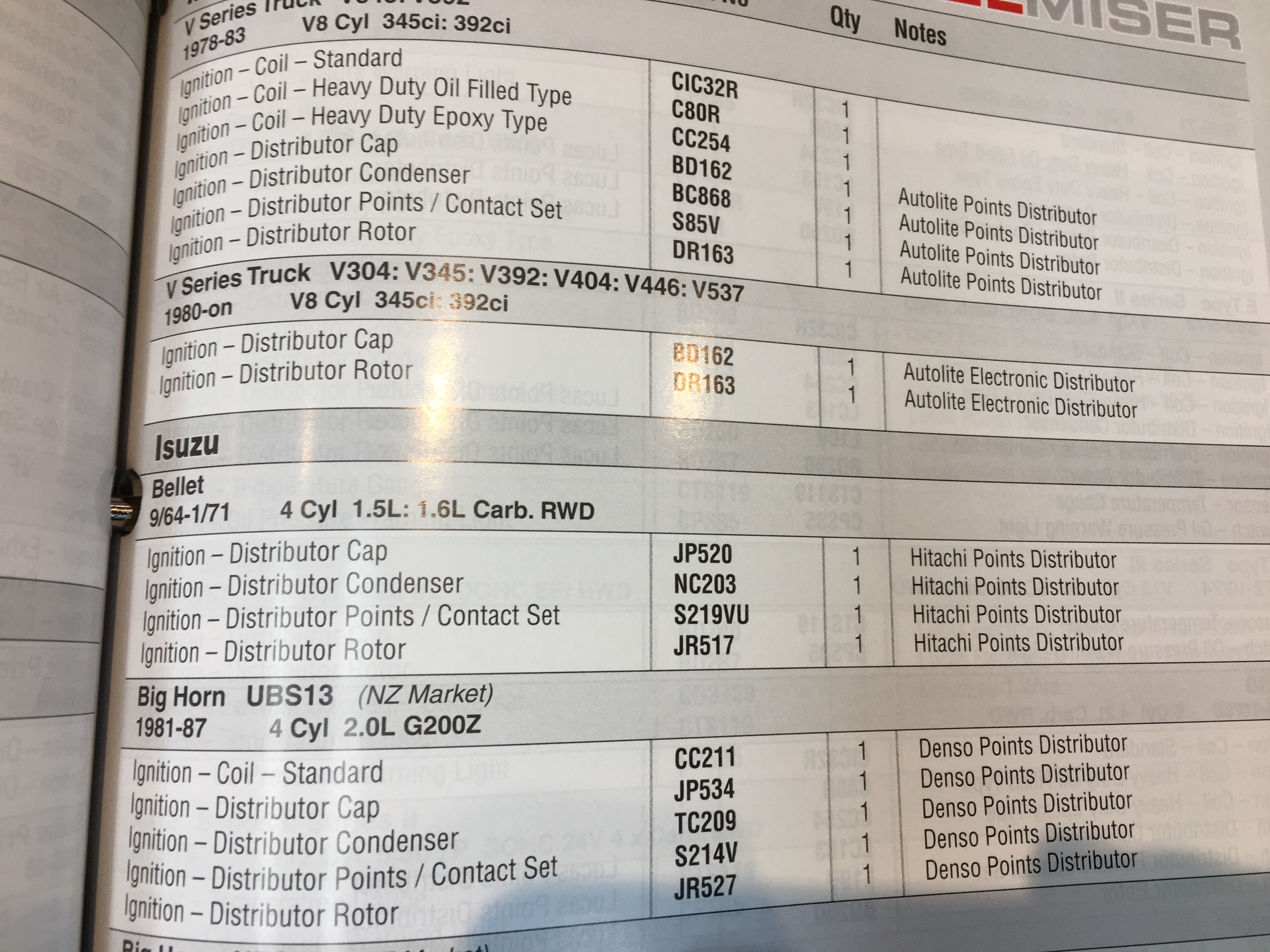 I have attached a photo of the Fuel miser catalogue listings for Distributor cap, Condenser, Points set and rotor for the 1.5L and 1.6L all should still be available