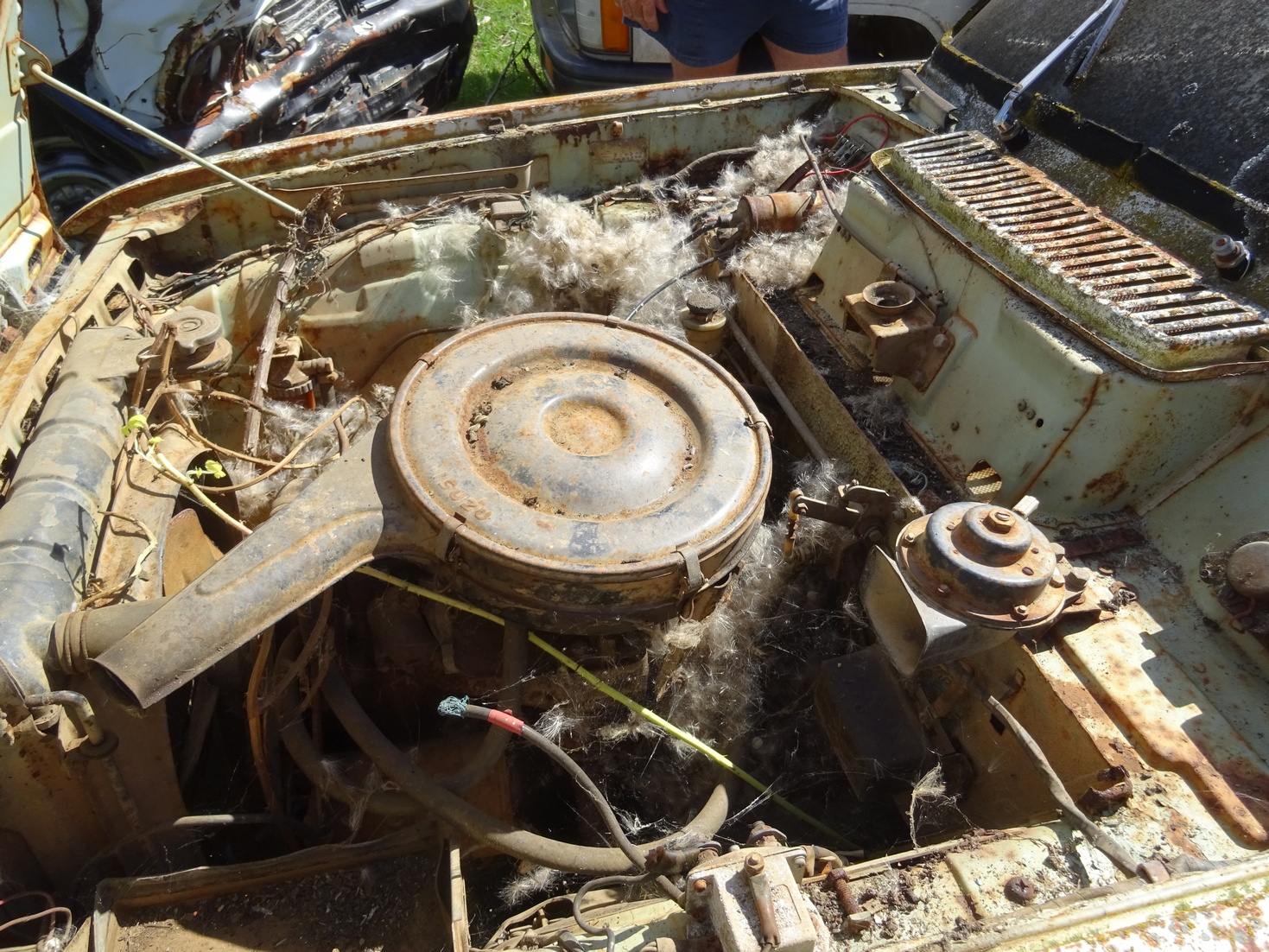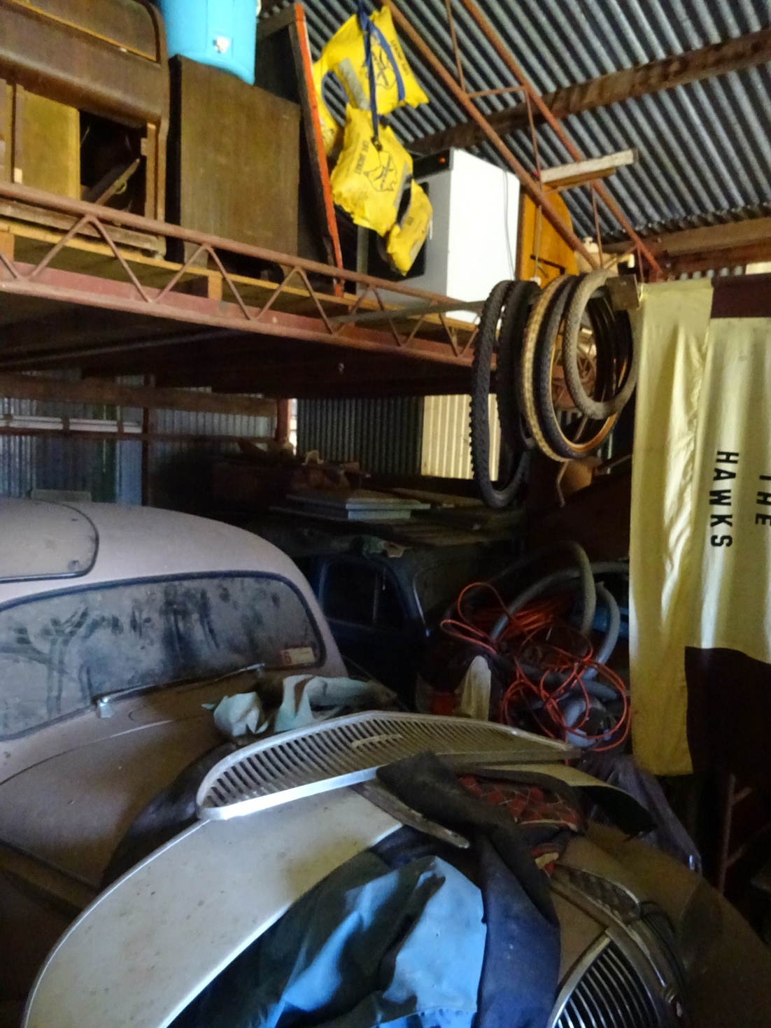 OK OK here are some pics from Russel's place He had stuff everywhere, in sheds, in paddocks, in containers, under tarps and even in gardens. The very first thing I spotted was this garden Beetle. It is my absolute favorite model Beetle and one I tried to find for myself years ago when I had them, before Donkey came into my life. It's a 59 Beetle, the last model with the semaphores, first of the bay windows (first after the ovals) Attachment: