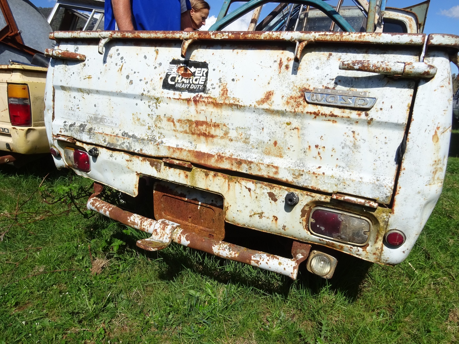 67GT wrote: Gee Sticky, I’d hate to be your “lady interest” . WHAT A TEASE No time for a lady interest mate...... too many cars  and besides, there's not enough room in Donkey Alrighty enough teasin' We met Russel in the main street at Bright , he used to own a wrecking yard there years ago. He stopped to check out Gricey's Florian as he'd never seen one before so we got to chatting. He knew what the Bellett's were and then said "I have a Wasp, the ute version of what you're driving, but I've never seen one of those Florian's before so had to stop and check it out" He then said "I know a bloke in Albury that has a heap of your Isuzu's" Cheryl was standing beside me at this point and said "that's us" Next thing Jim is along side us and organizing a tour for us through Russel's Aladdin's cave and paddock of wonder The Wasp was sold new in Bright and has never left the area (and if my impressions of Russel are correct..... it never will) It has had 3 previous owners to Russel and one of them had beat the tub guards out to fit bigger Landcruiser rims and tyres but...... it still has tail lights, reverse light, fuel cap, tub ID tag and it's tailgate badge The LH front guard was very beat up (would have to be very committed to fix it) and missing it's badge but the RH was fairly good and had it's badge in place. Drivers door a bit banged up too. Interior was all there as was orig motor and radiator. Motor turned over by hand and no reason it wouldn't fire up with a few little thing reconnected. It is BEAUTIFULBut check out the pics and assess it for yourself.....and sorry but NO!! there will be no specific contact information or location details for Russel given to anyone by me. His privacy request will be respected. So with no further adieu, here is Russel's Wasp in all it's wondrous glory Attachment: