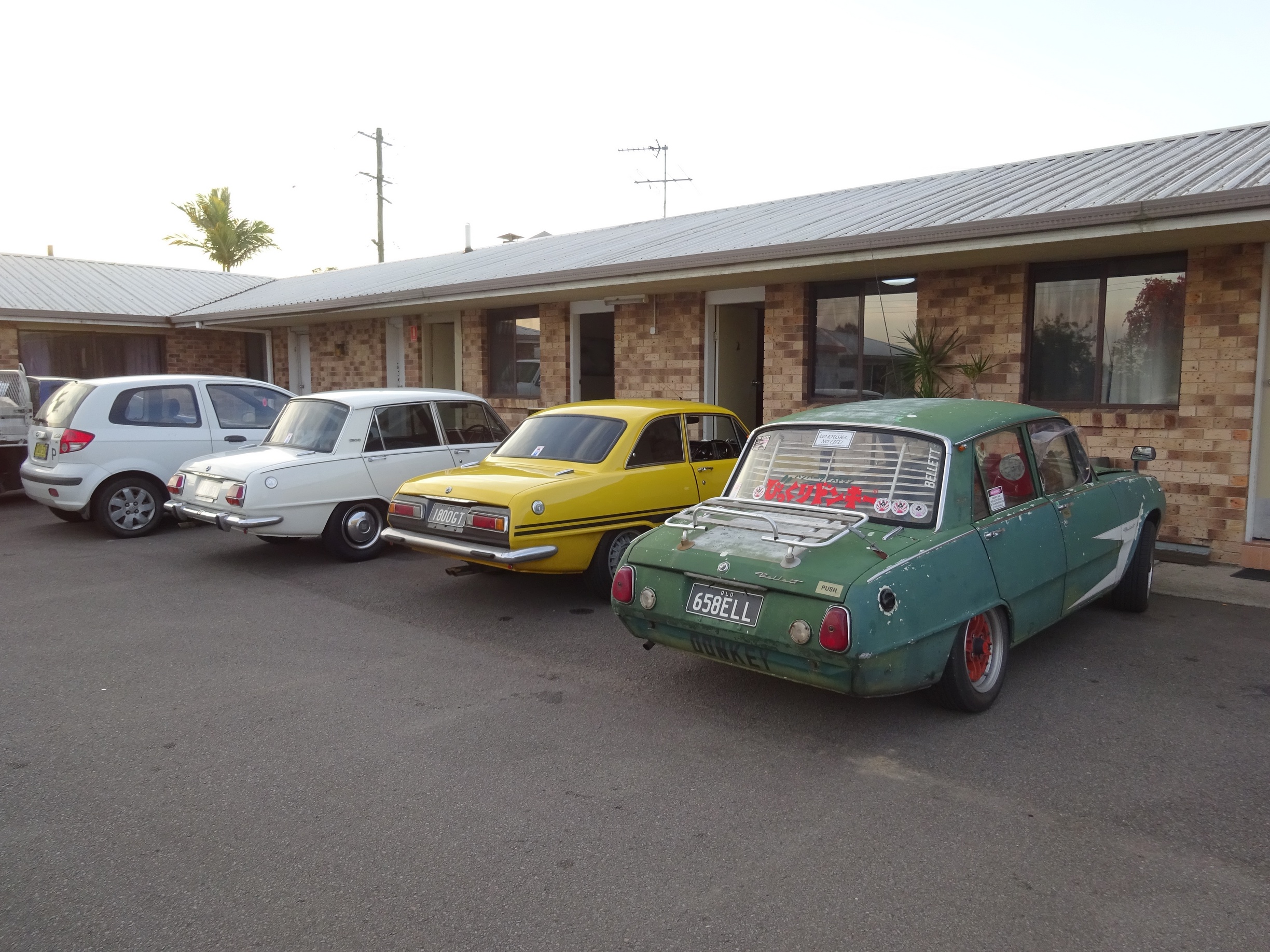 Car(s): Doris, AuntyMary, Shrek, Jimmy; GT, Wasp, Flo & Sed unrestos; 65 Elf; 82 Rodeo, 60 TX550, 72 Sport, & a Sigma.