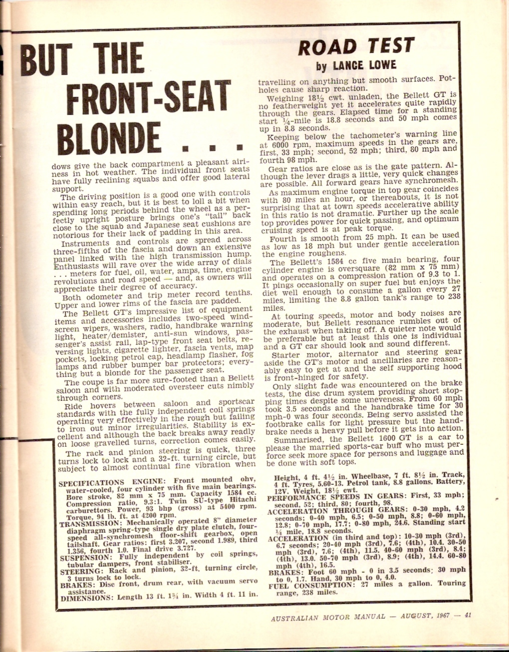 Bellett 1600GT - Motor Manual July 1967