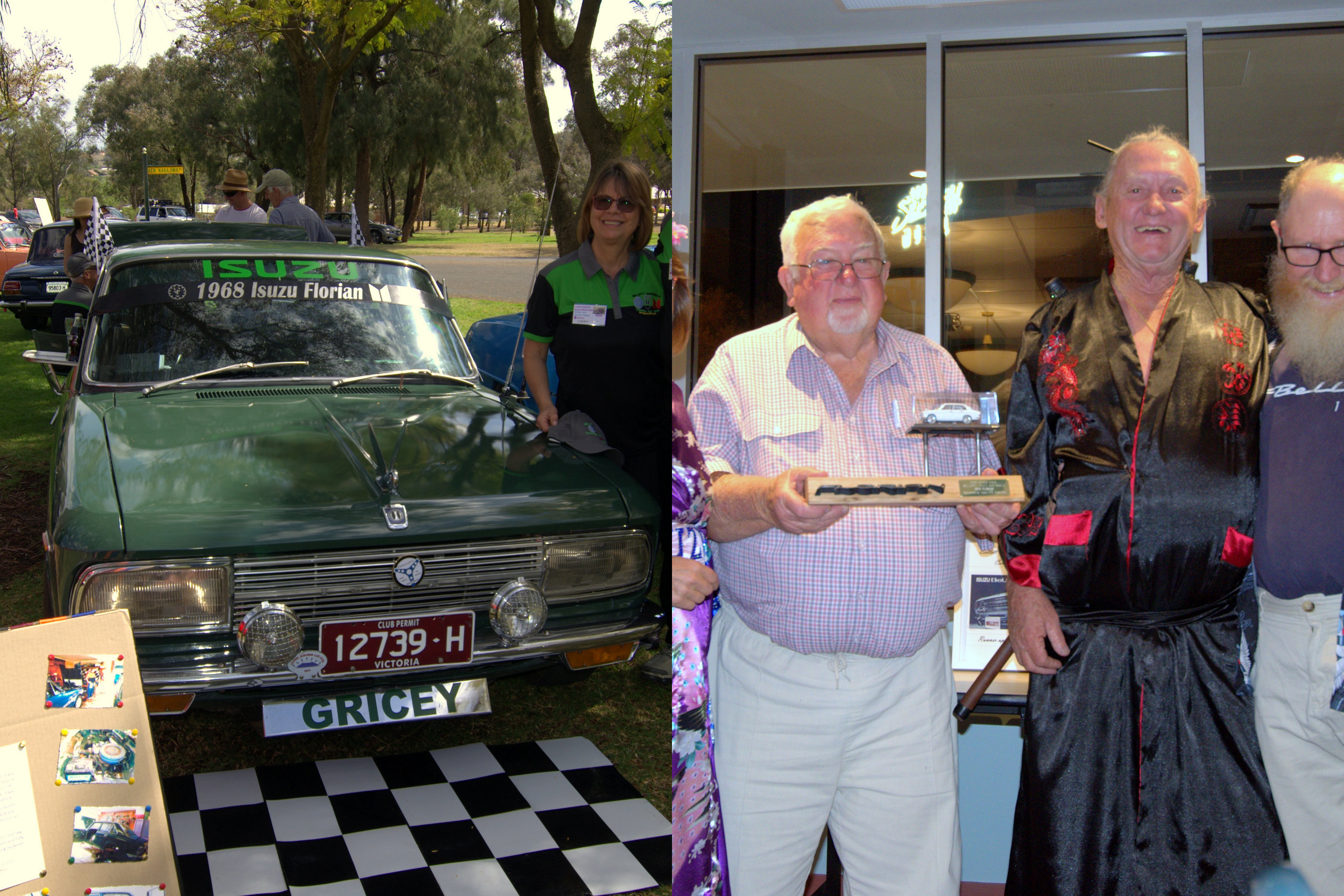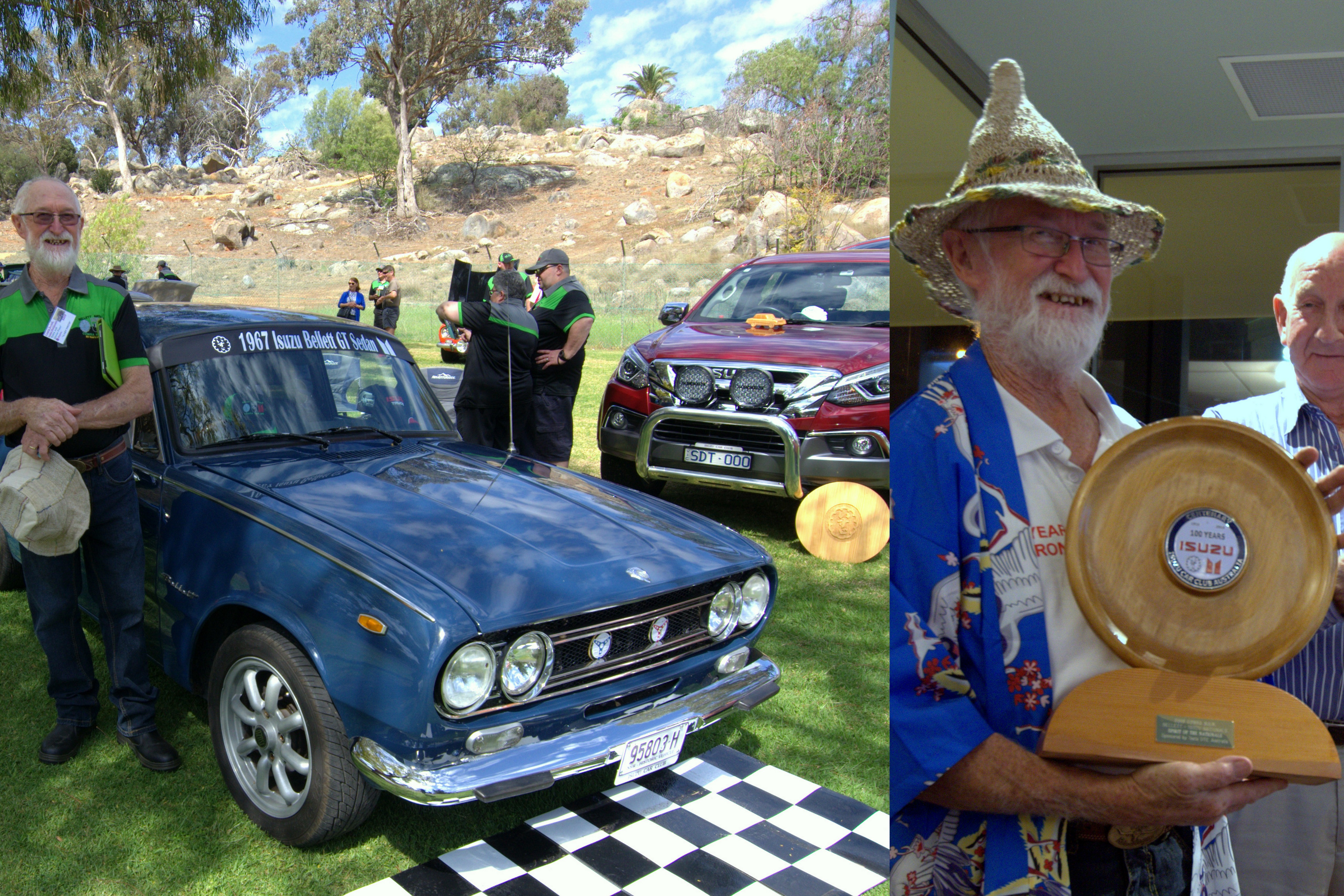 Thanks Julie for all the Pictures, yep, not much time for picture taking 2018 National winners Best GT, Dave Maurice, Runner up best GT, George Cozamanis Best Sedan, Graham and Chloe Hadley Runner up best Sedan, Alan and Marie Cherry Best other Isuzu, Matt Smith , Florian Runner up best other Isuzu, Bob and Loretta Blackwell, 117 coupe Best Modern, Peter and Raena mckill, Dmax ute Peoples choice award, Graham and Chloe Hadley Encouragement award Joshua Boxer Spirit of the Nationals, Ross, Emma and Charlie Smith,